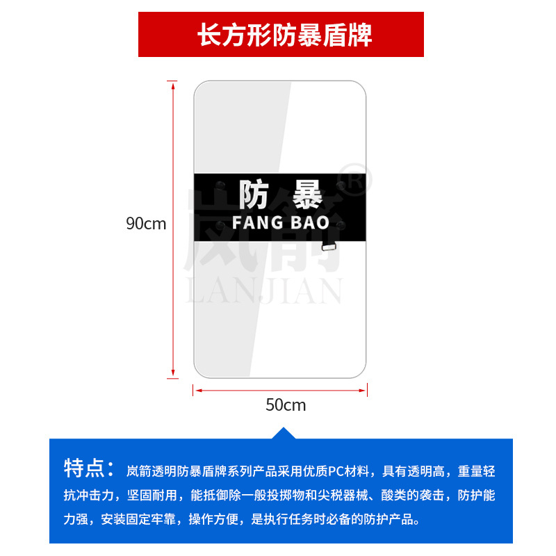 批发PC透明盾牌法式防暴盾牌安保安防器材幼儿园保安手持保安装备