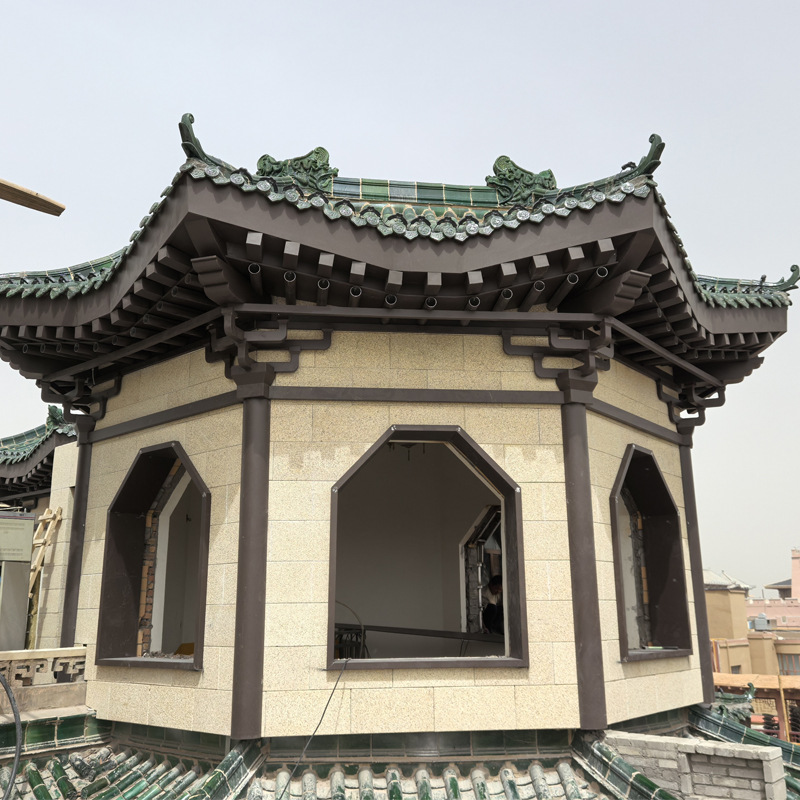 铝合金仿古瓦立体屋檐装饰古建屋脊飞檐翘脚中式门头寺庙凉亭翘脚