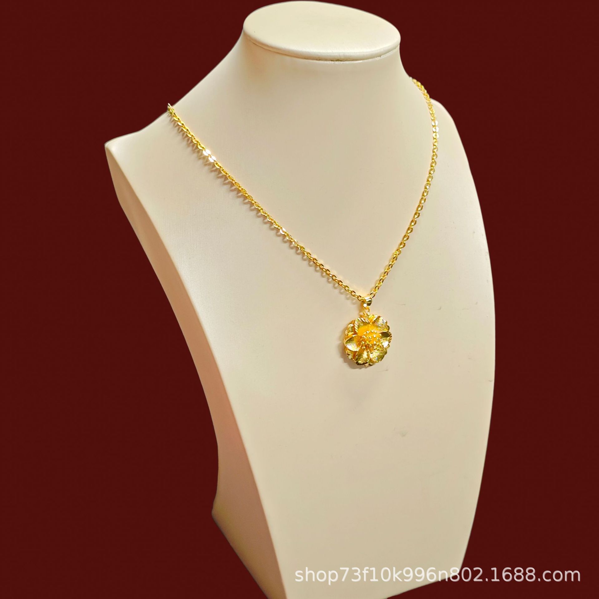 越南沙金精致铜镀金项链女牡丹吊坠送妈妈女朋友礼物首饰厂家批发