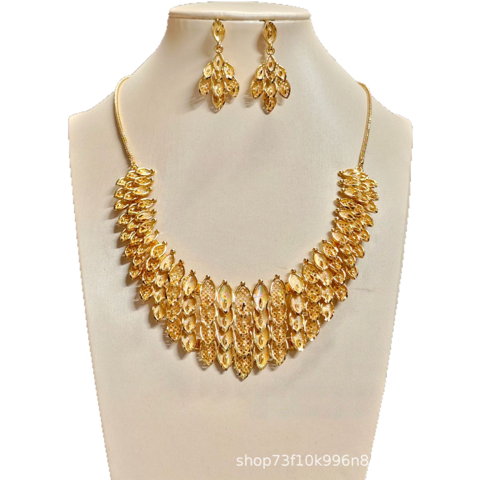 跨境迪拜中东金色凤凰孔雀羽毛手工项链新娘结婚越南沙金结婚套装