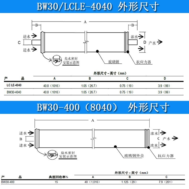 规格 | BW30FR-400/34(抗污染膜) | | 规格 | 型号齐全欢迎咨询 |