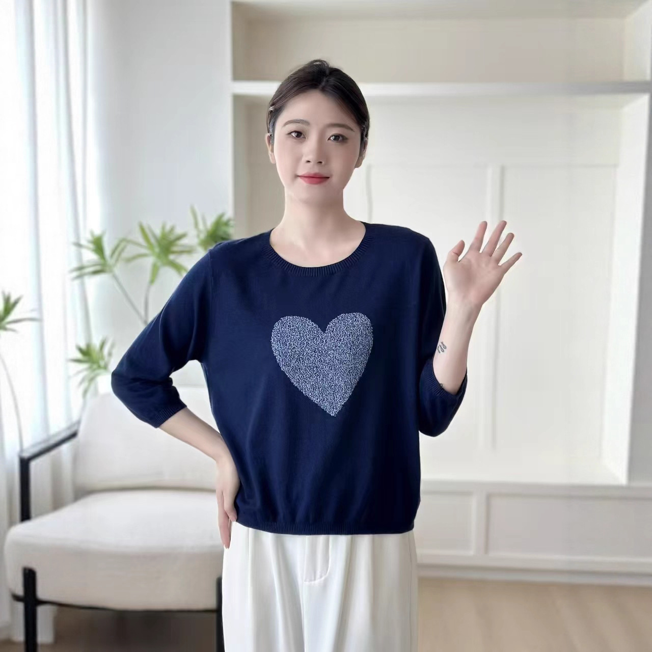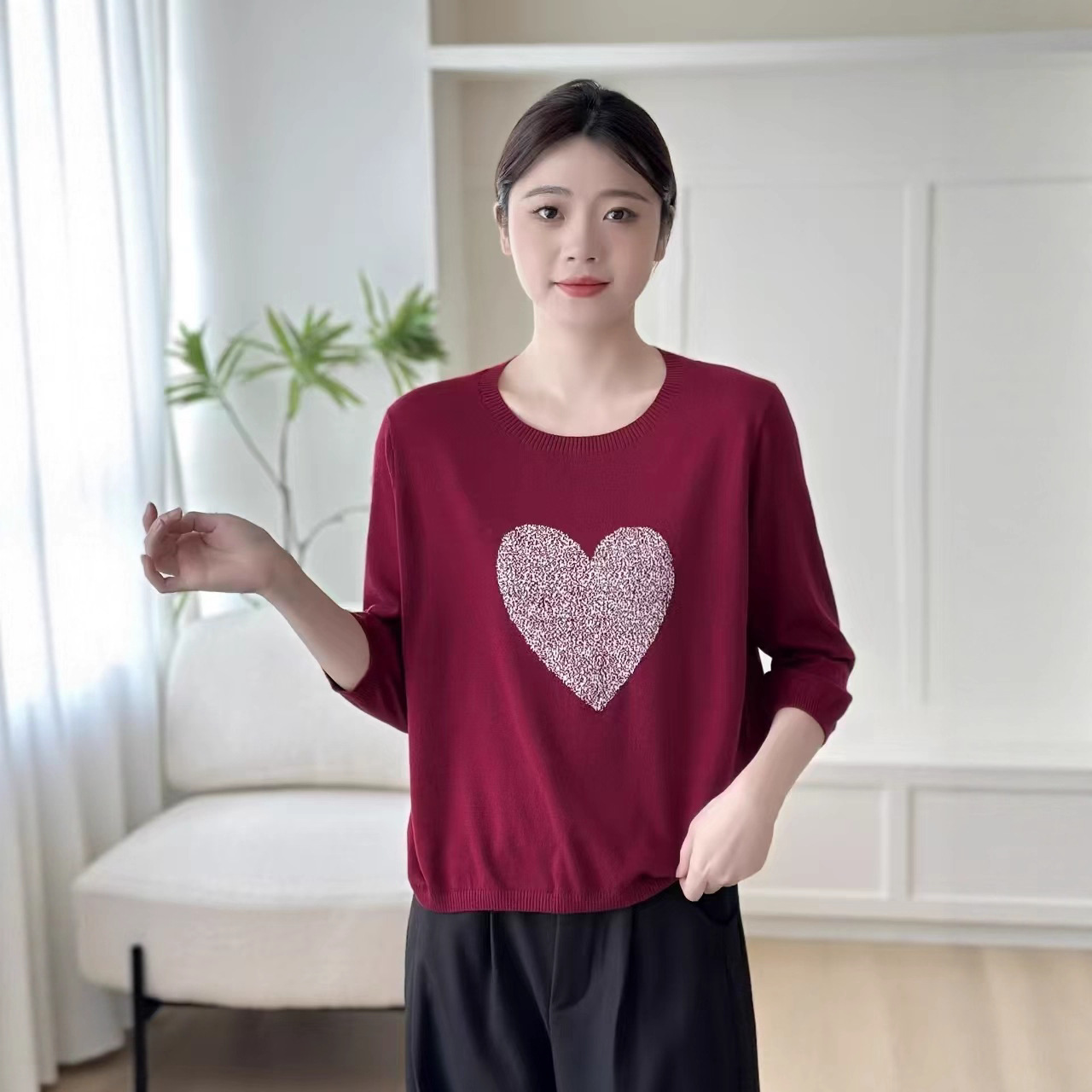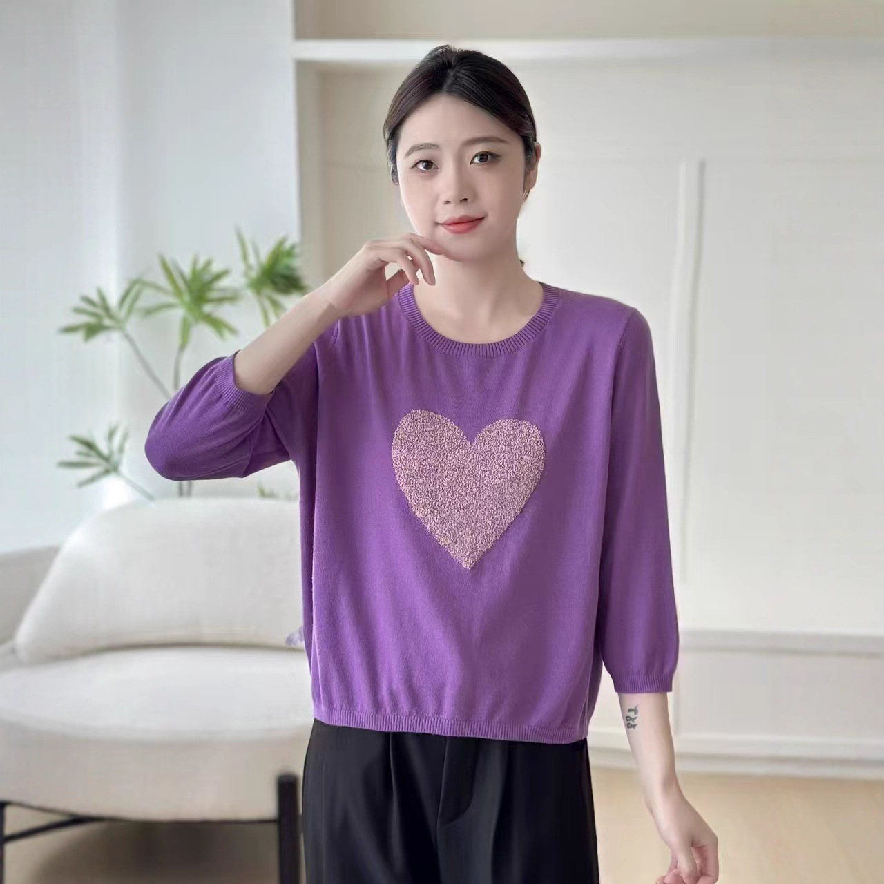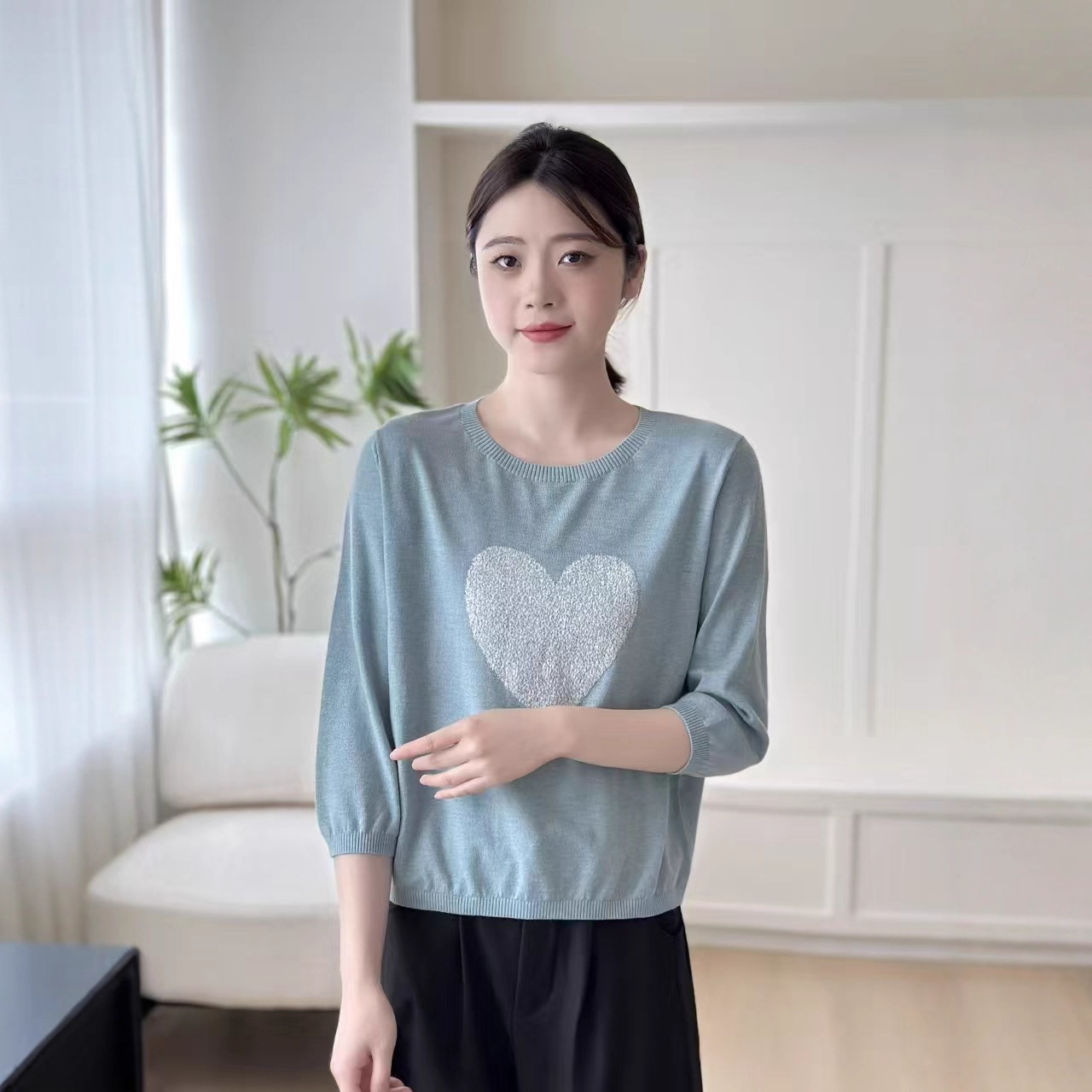 2025秋季新款女士打底中袖上衣针织衫新款宽松冰感慵懒舒适休闲