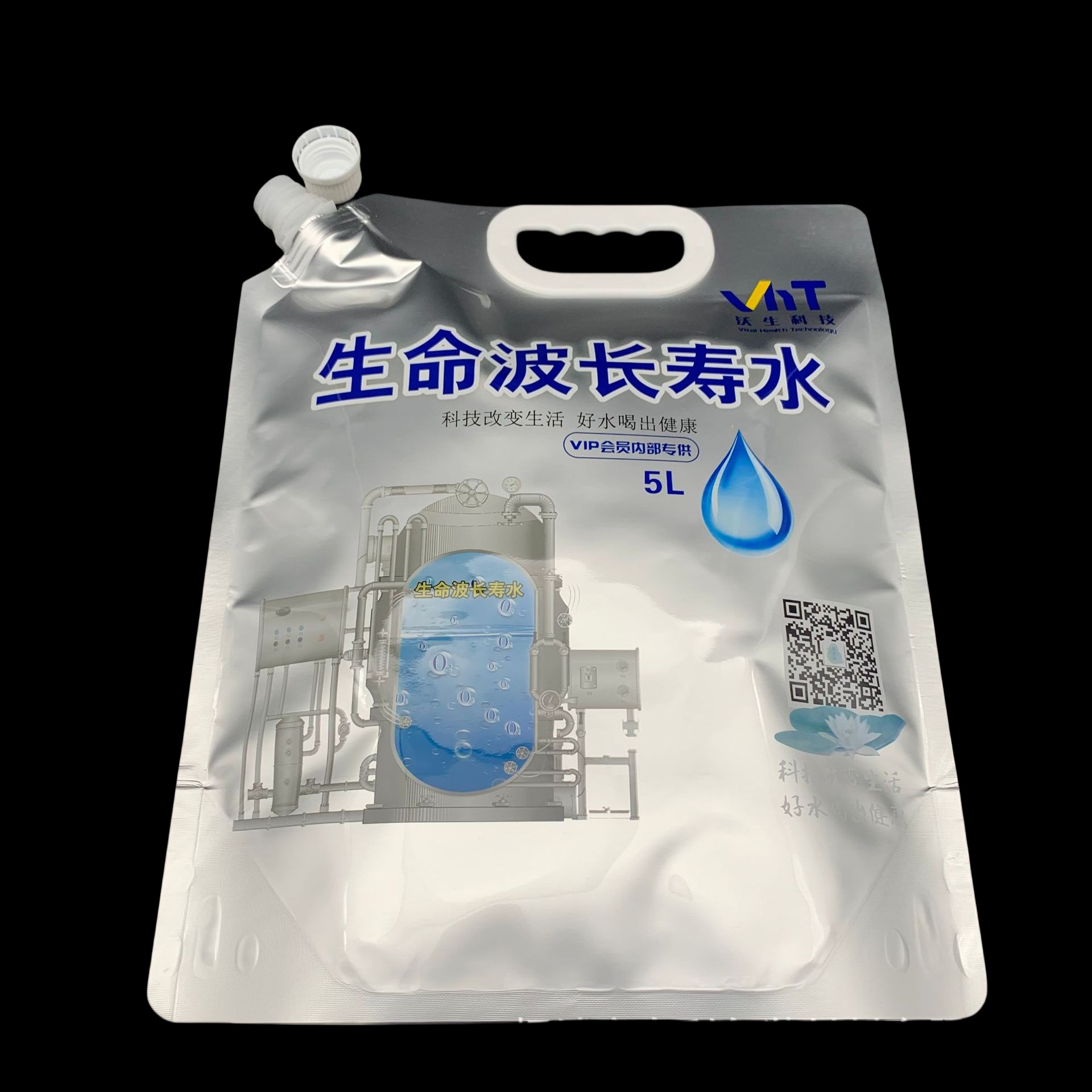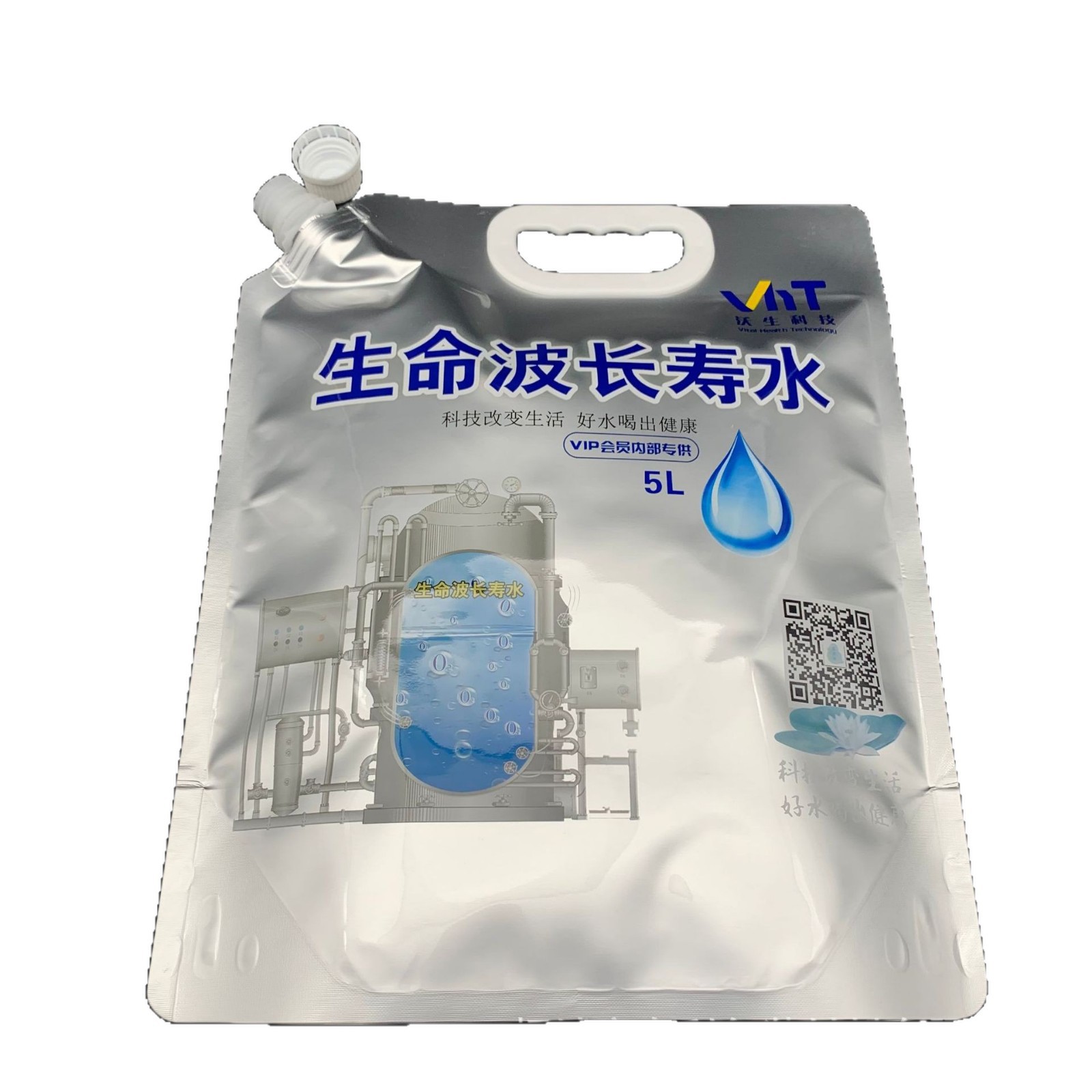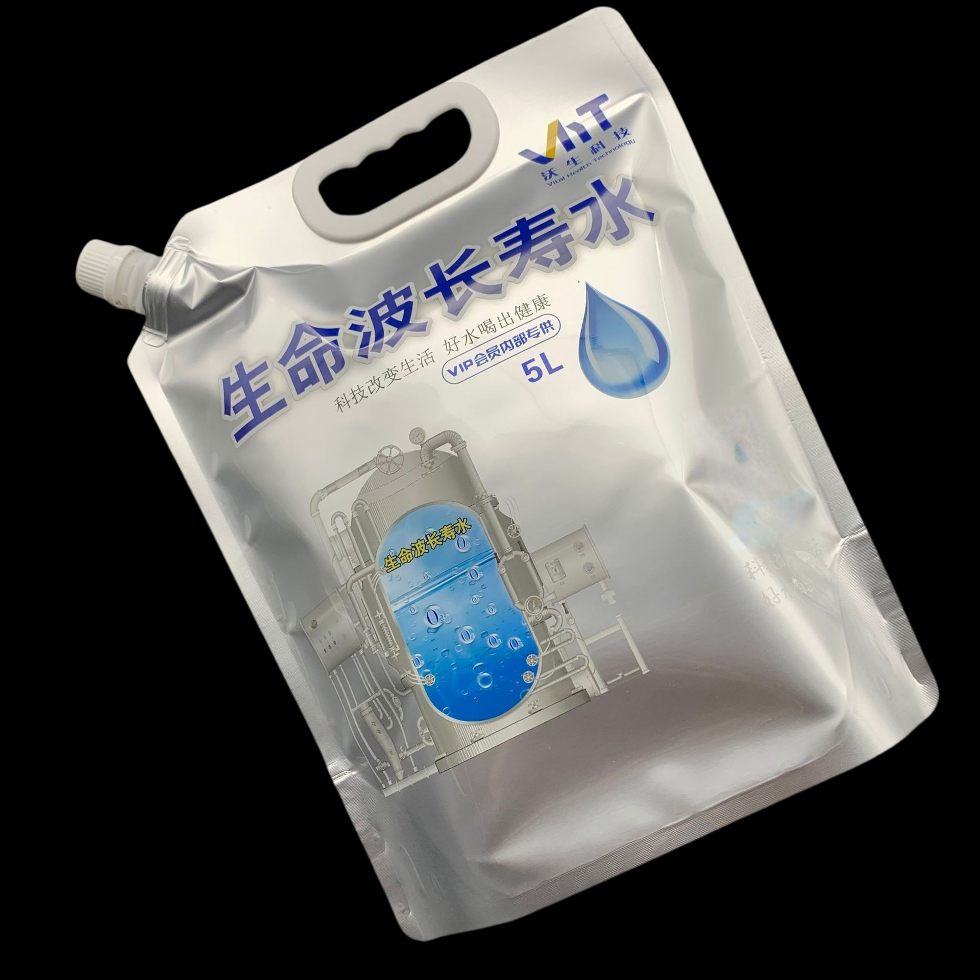 厂家定制2.5L5L富氢水铝箔袋高阻隔低氘水吸嘴袋手提站立生命水袋