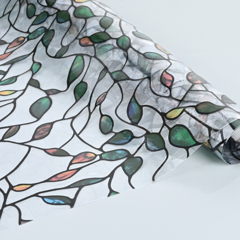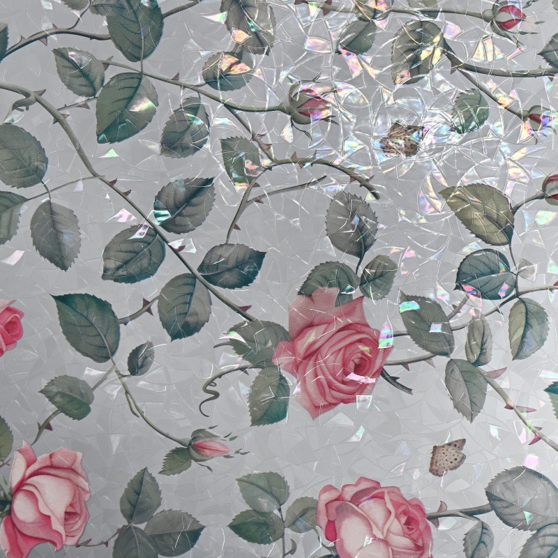 静电玻璃贴纸花卉款办公室浴室透光磨砂窗户纸膜防窥膜隔热玻璃贴