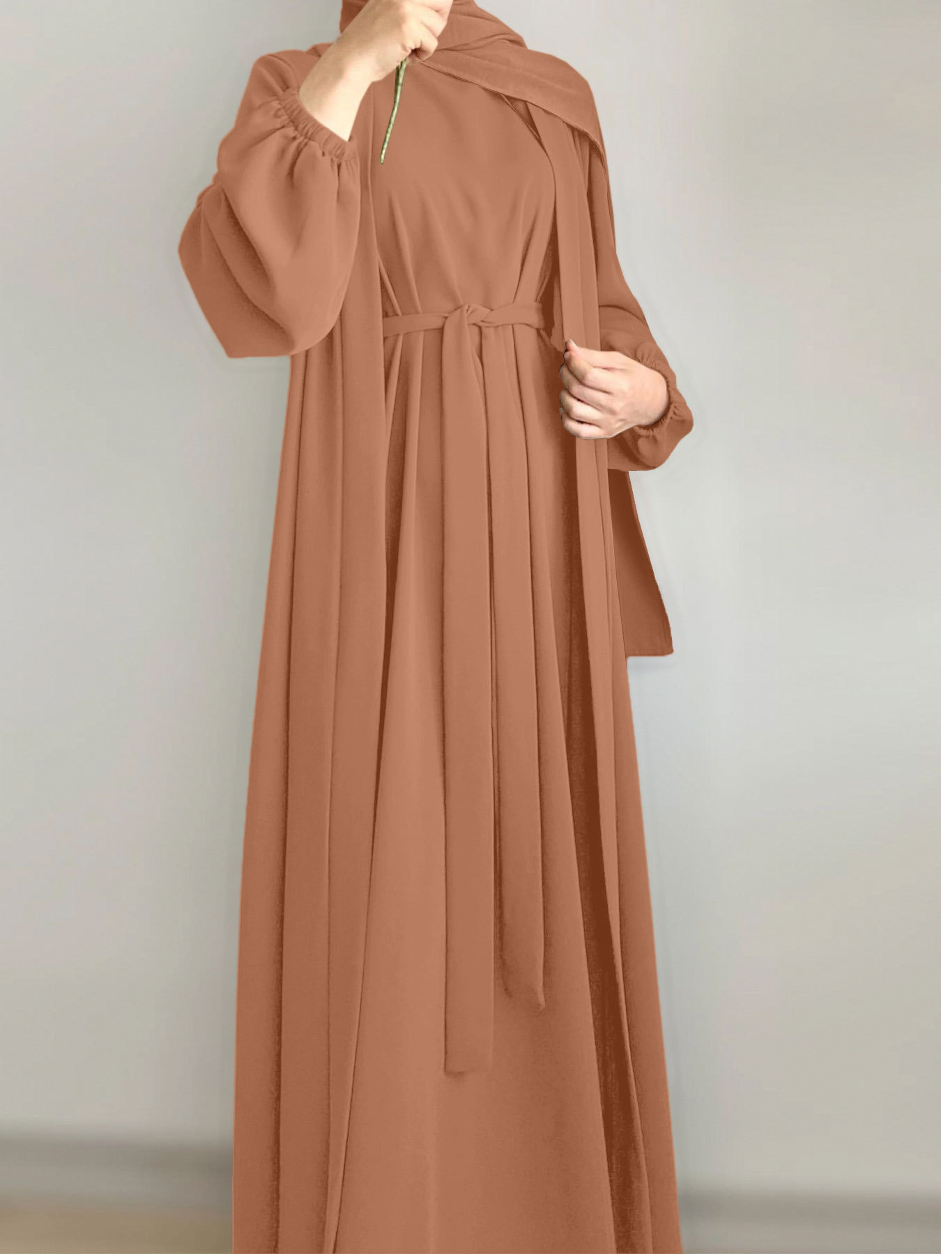 2025春季新款亚马逊速卖通土耳其迪拜纯色两件套女士长袍连衣裙