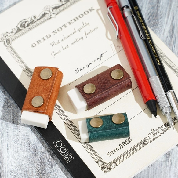 外贸跨境创意高颜值复古按扣橡皮擦皮套 送礼教师橡皮擦防滑皮套