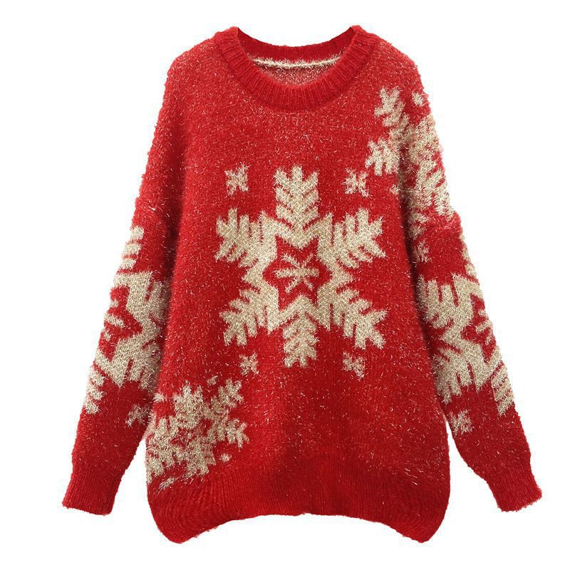 2025新款秋冬圣诞外穿加绒针织衫毛衣女宽松加厚长袖欧美风