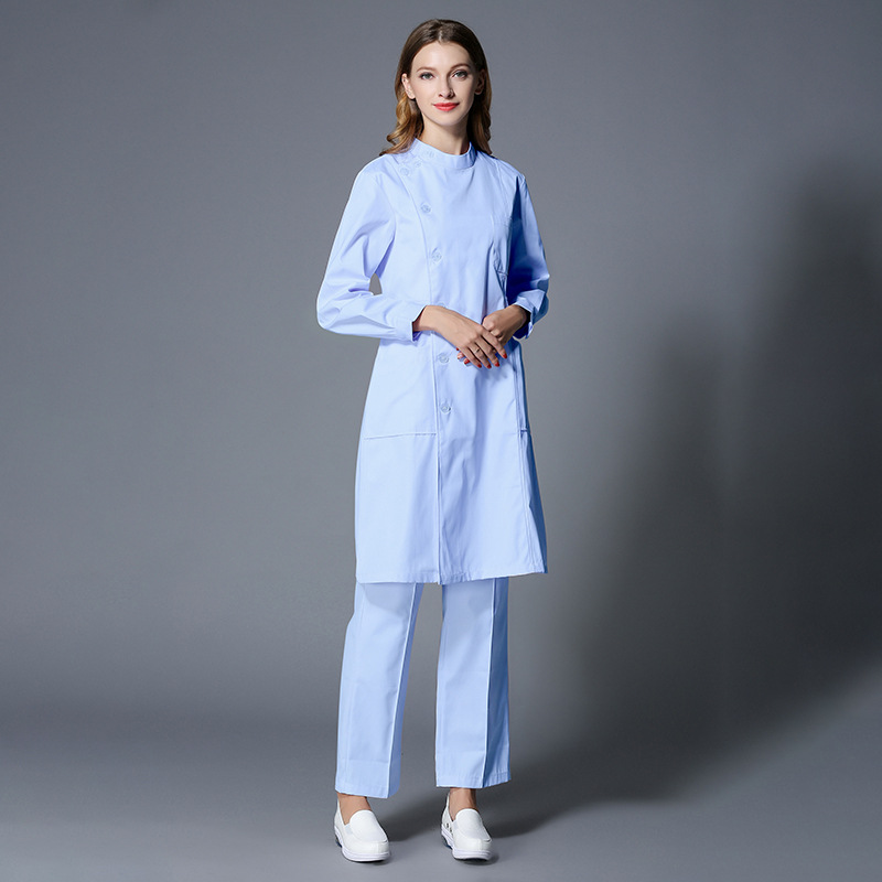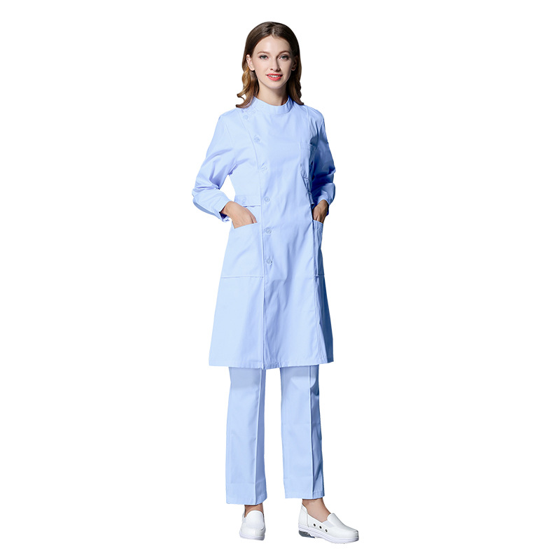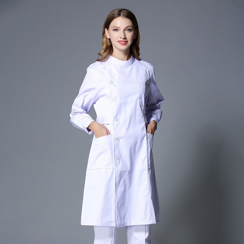 医院护士服秋冬款女长袖白大褂偏襟立领短袖药店美容院服简约