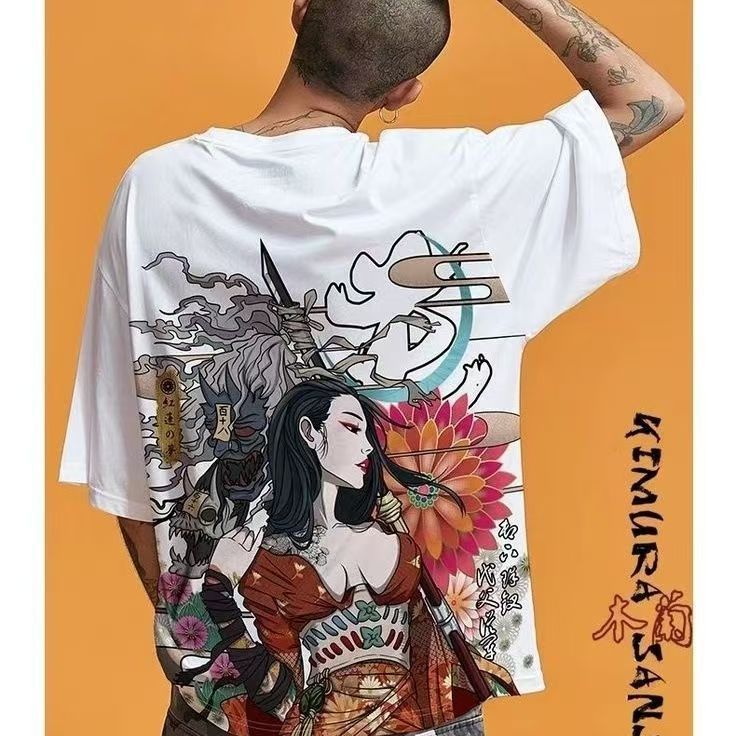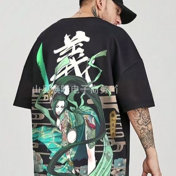 跨境新款夏季男士爆款男女宽松T恤日式浮世绘印花潮流短袖