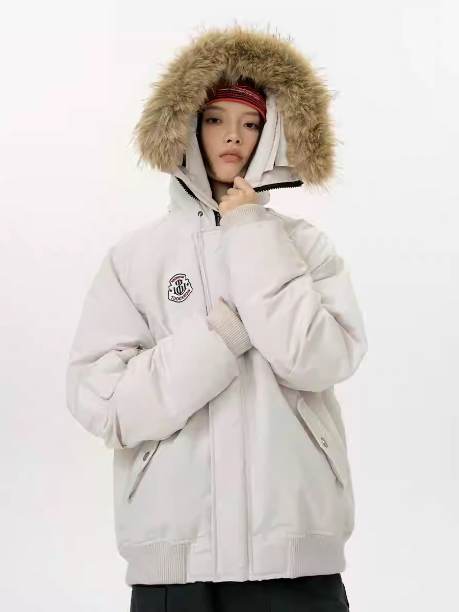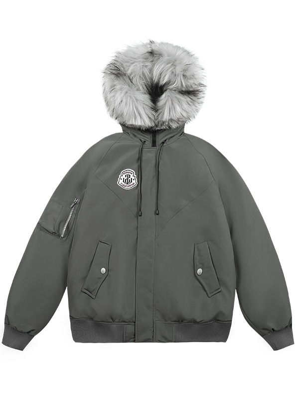 黄子弘凡同款原连帽毛领派克棉服复古保暖深灰色