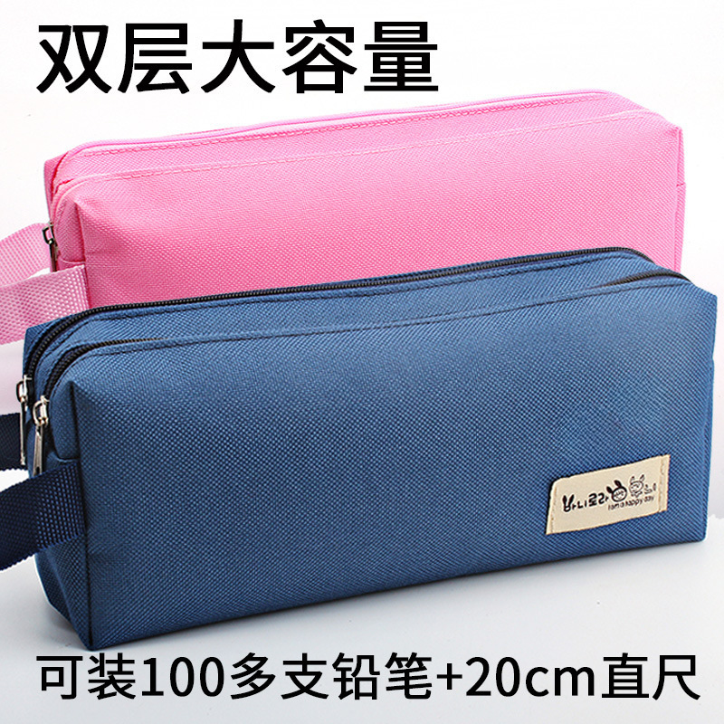 加长大容量双层笔袋带手提简约时尚铅笔袋男孩小学生复古风耐包邮