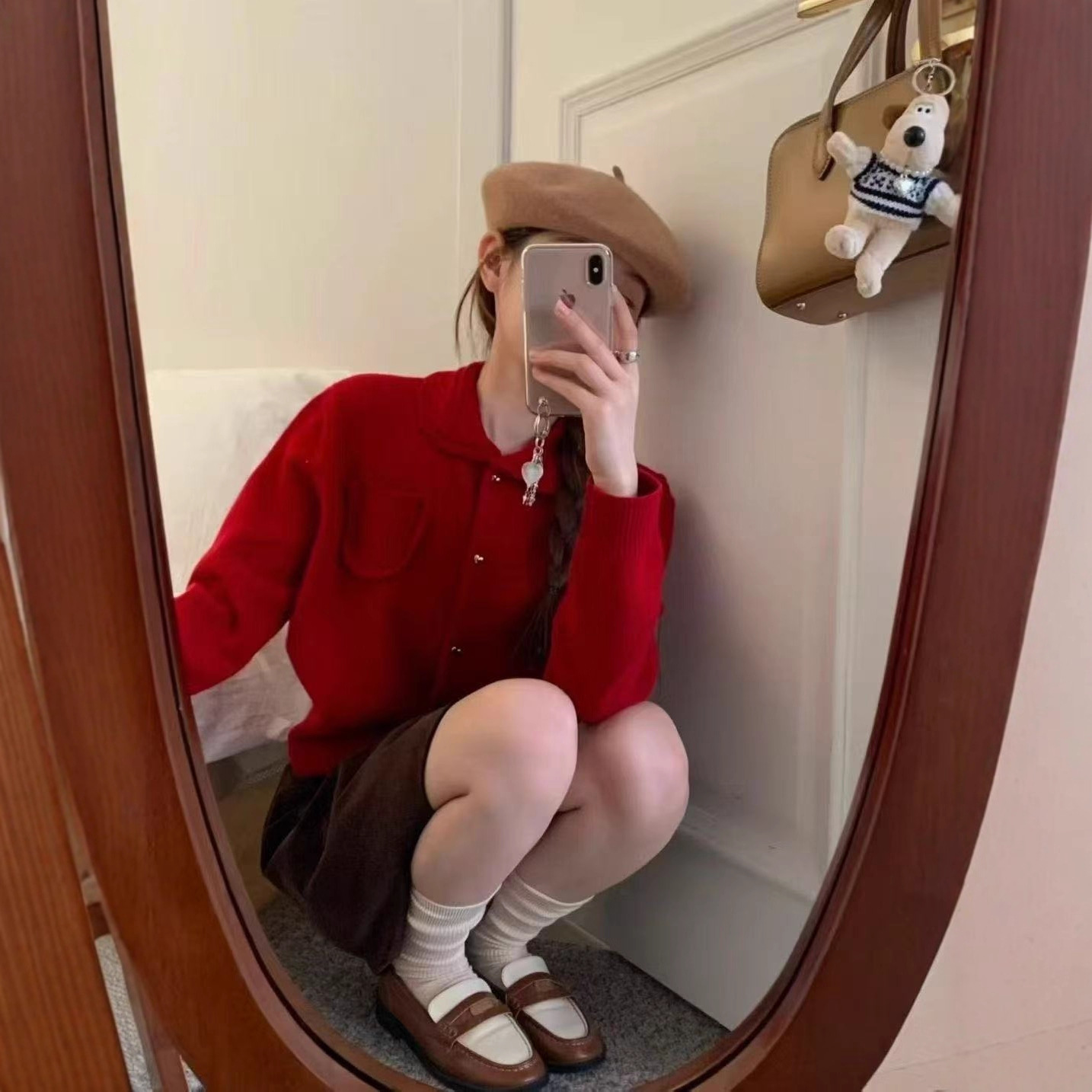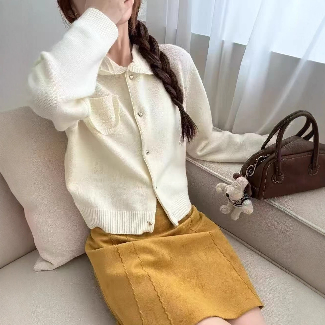温柔时尚翻领毛衣女2025秋冬新款简约百搭韩系针织开衫外套