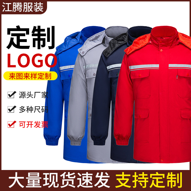 防静电冬季加厚棉服防风可拆卸中长款防寒服加油站车间工作服工装