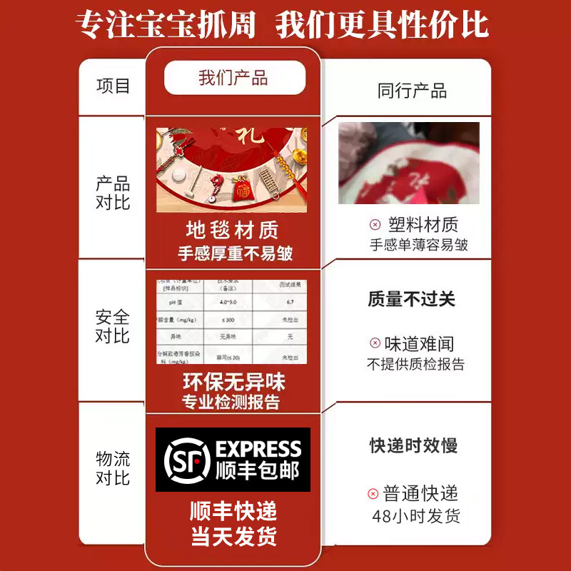 尺寸 | 【赠封酒贴+启智锣】乘风破浪毯+抓周28件 | 尺寸 | 【赠封酒贴+启智锣】乘风破浪毯+抓周30套 |