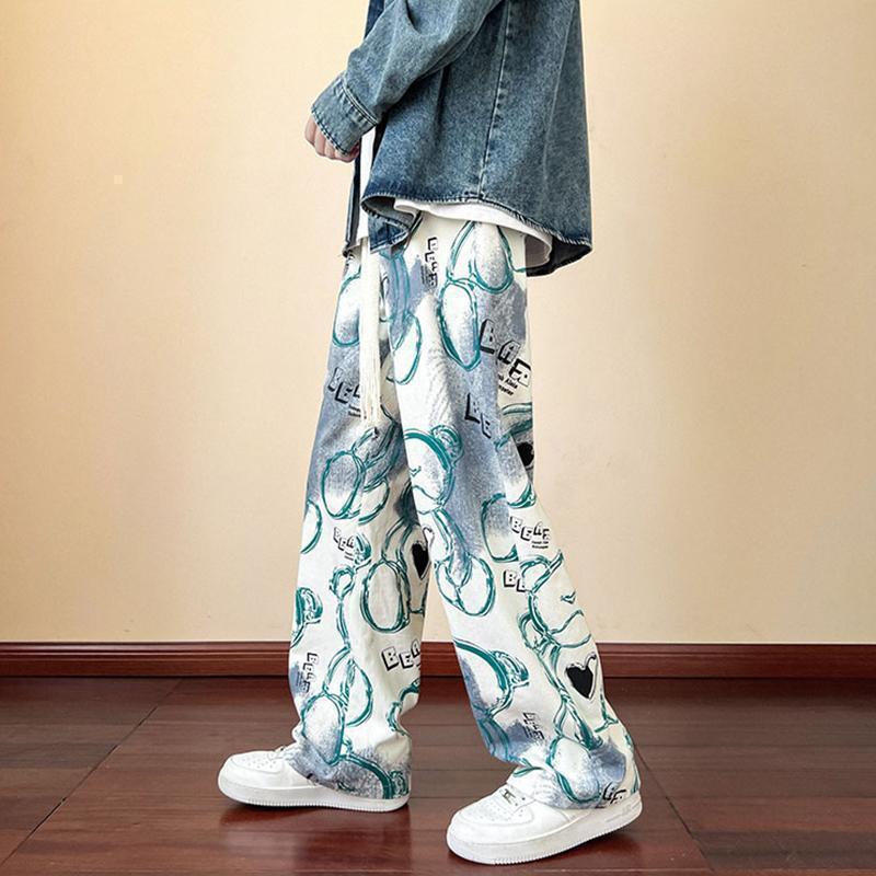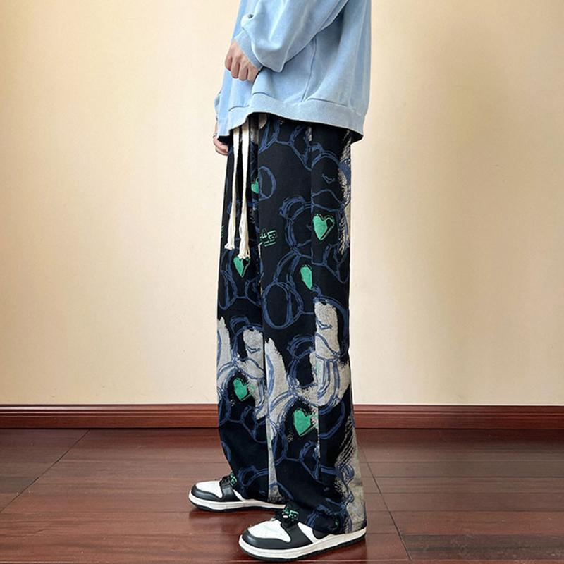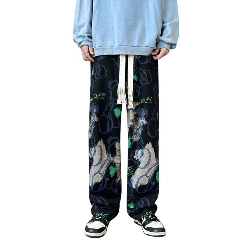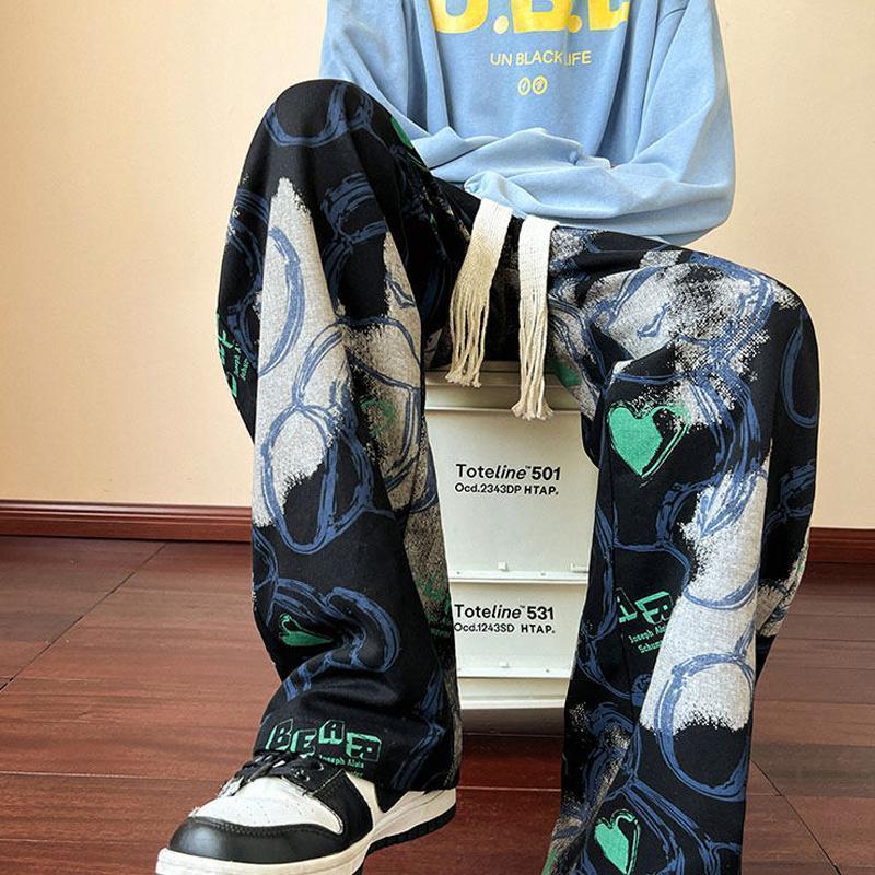 裤子潮牌痞帅炸街男秋vintage古着休闲裤美式复古涂鸦满印阔腿裤