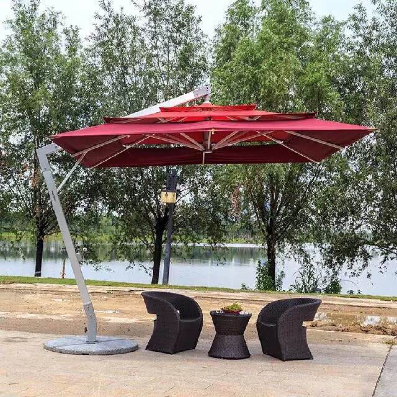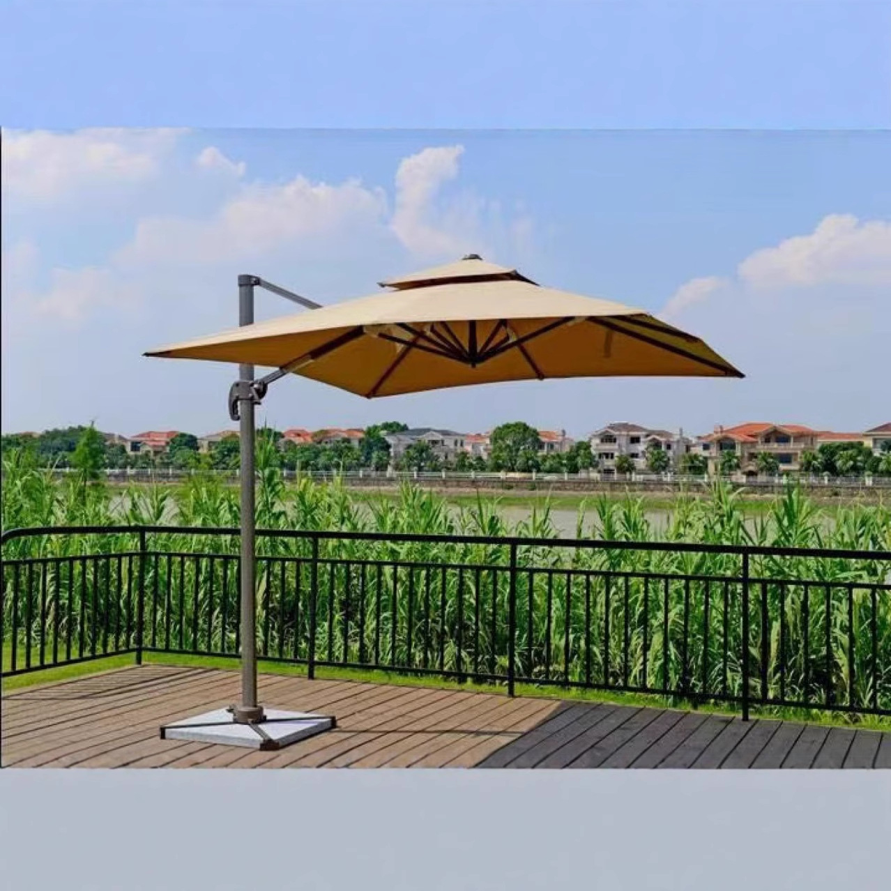 家居户外庭院伞双层透气加厚罗马伞岗亭防晒防雨侧立伞遮阳太阳伞