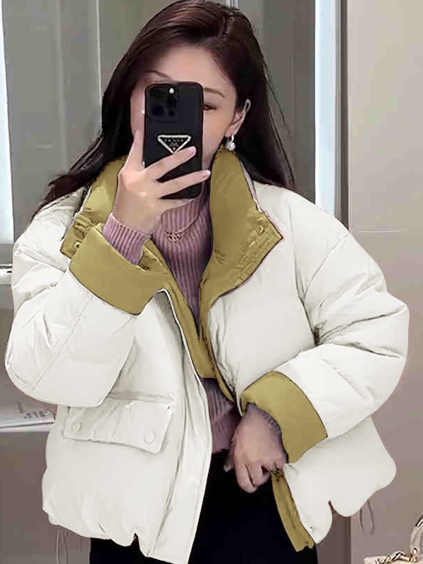 韩国东大门撞色立领棉服女 短款冬季新款小个子休闲面包服外套