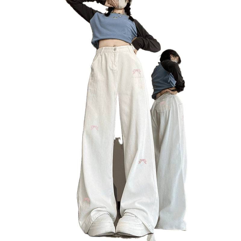 新款美式牛仔裤女ins高腰显瘦潮流百搭宽松遮肉直筒阔腿休闲长裤