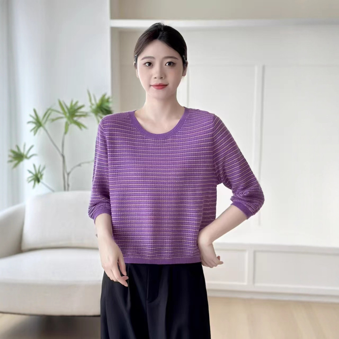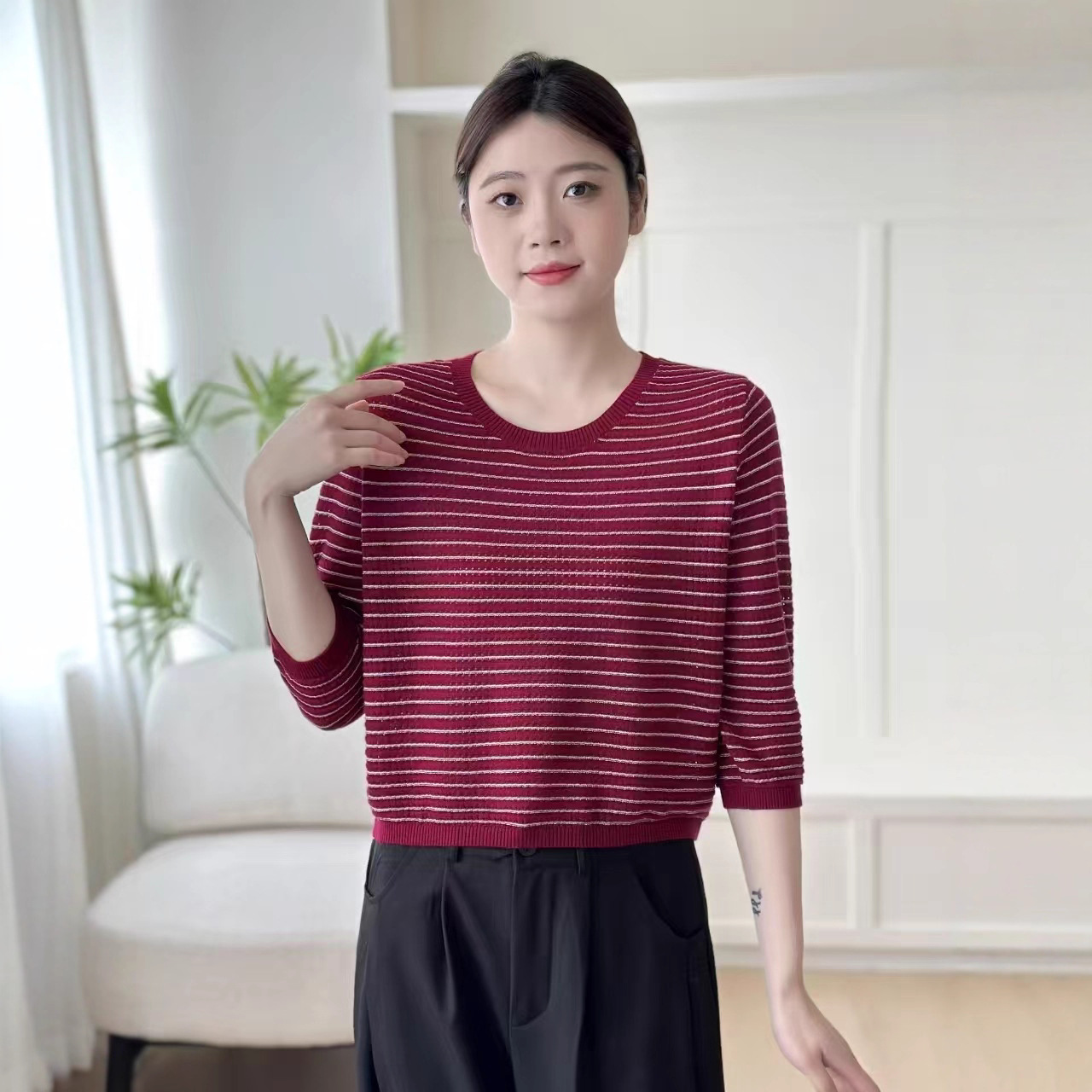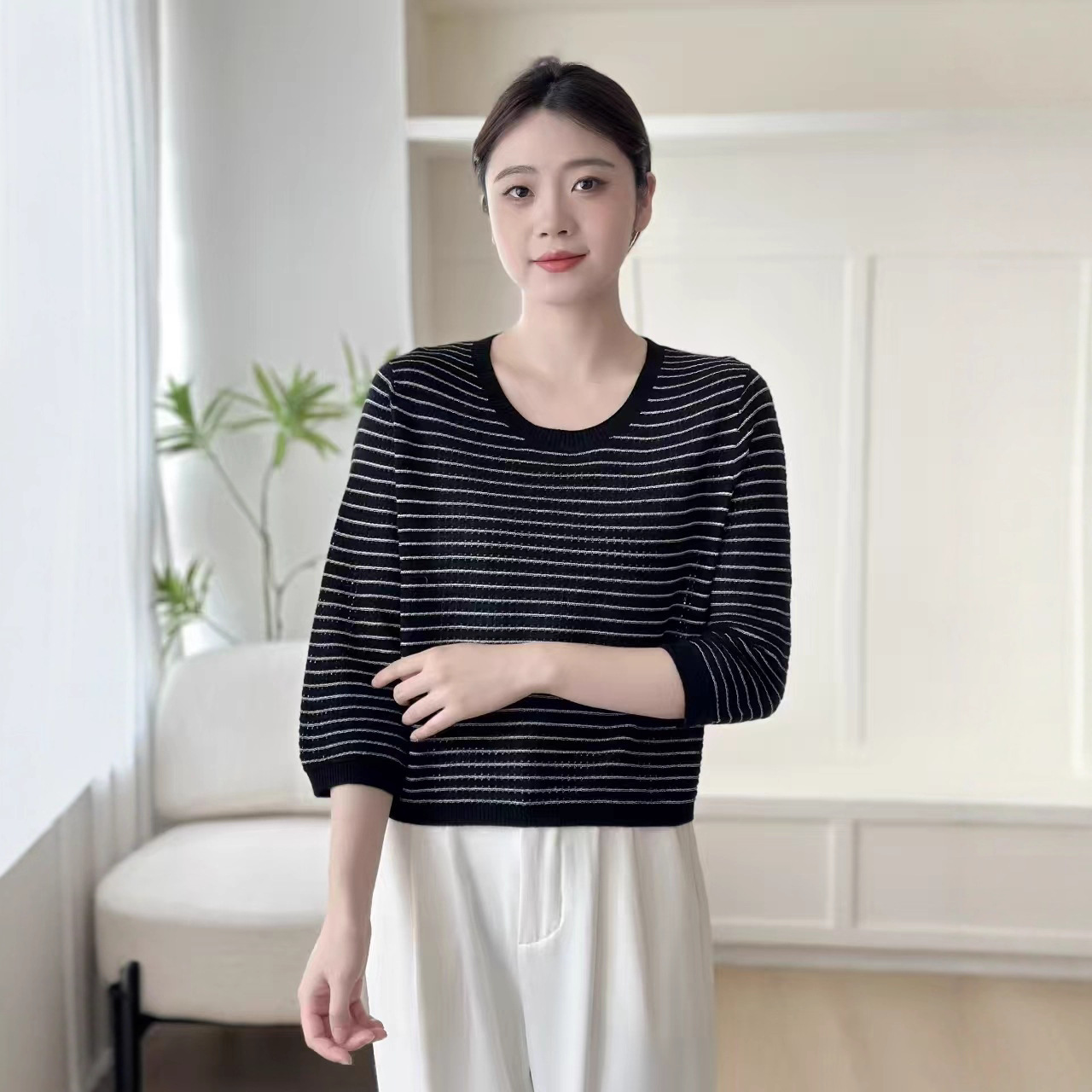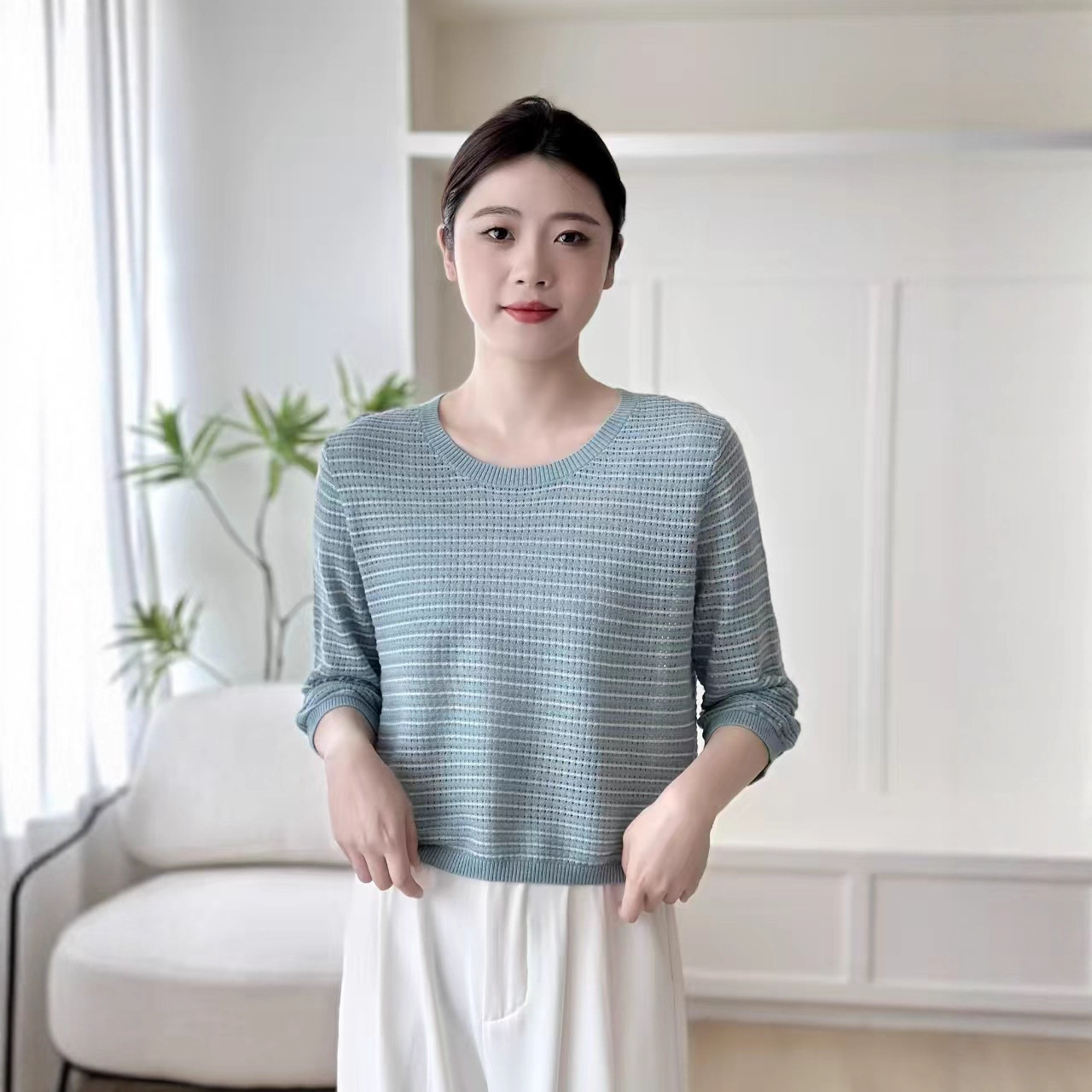2025秋季新款女士打底中袖上衣针织衫新款宽松冰感慵懒舒适休闲