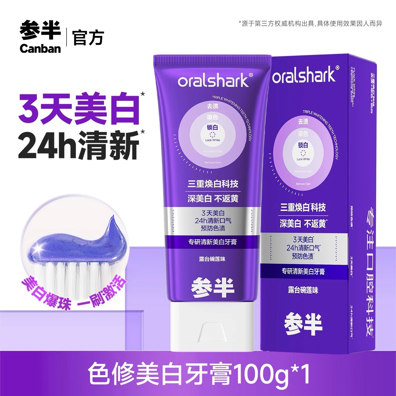【送牙刷】参半牙膏专研清新美白色修牙膏持久清新美白抖音100克