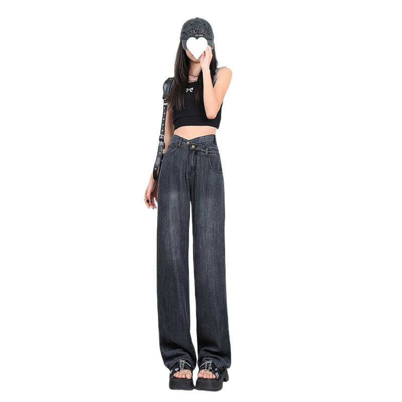 天丝软牛仔裤女夏季薄款冰丝阔腿裤高腰垂感梨形身材直筒拖地裤子