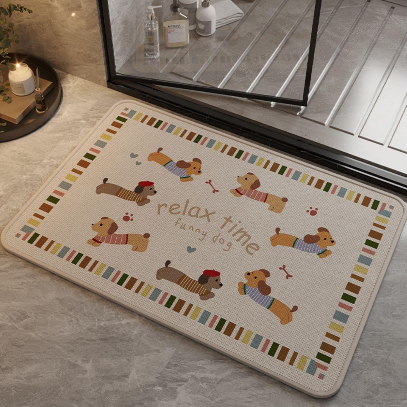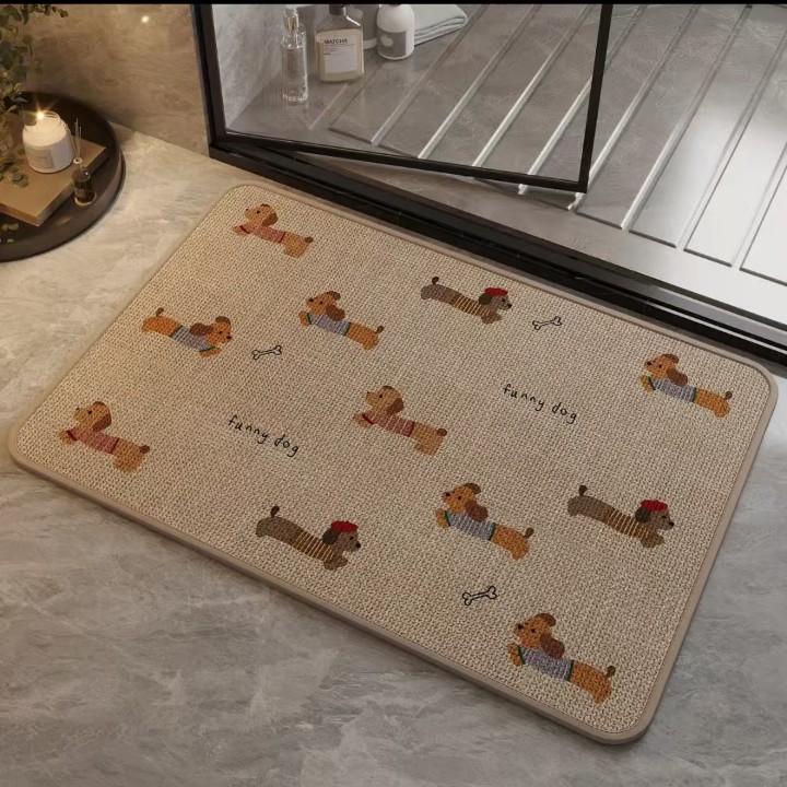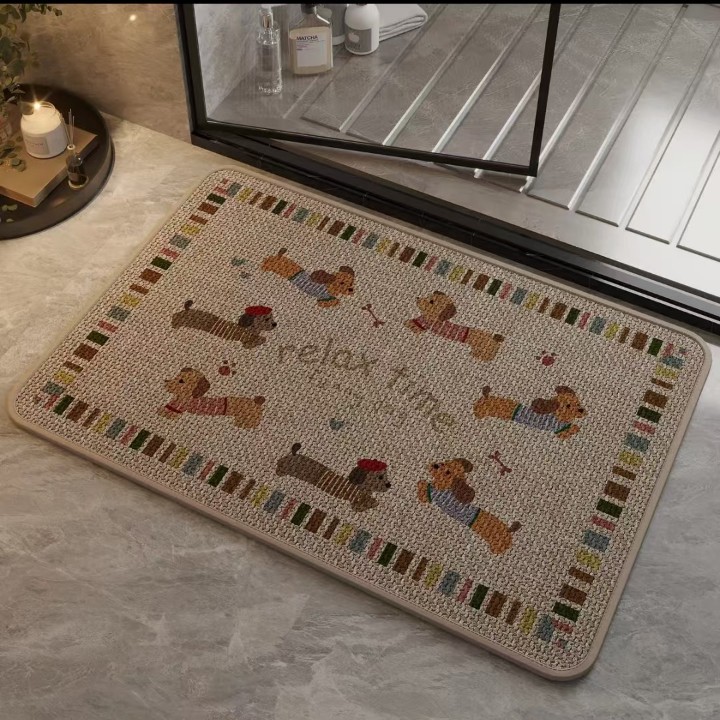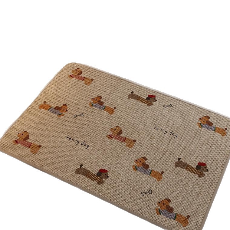 可爱狗狗亚麻地垫家用淋浴房门口脚垫厂家供应易打理亚麻吸水地垫