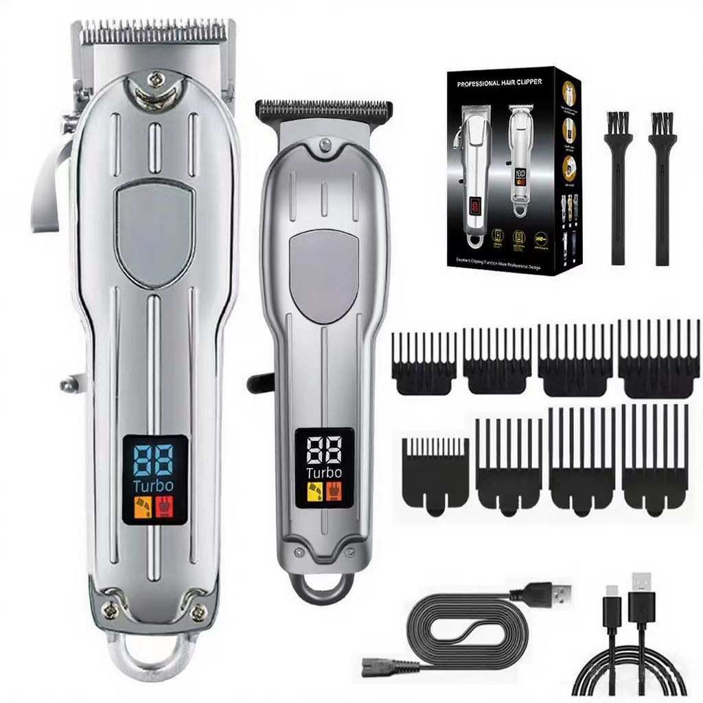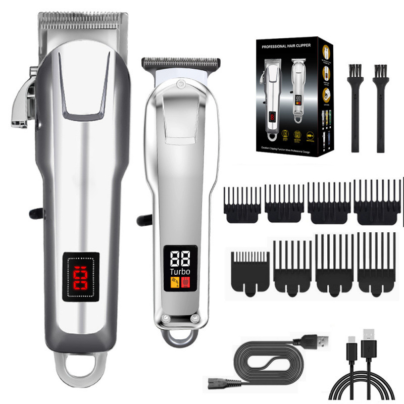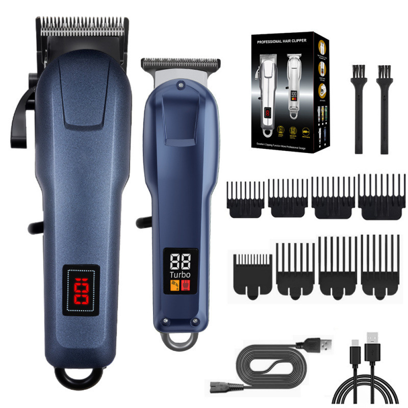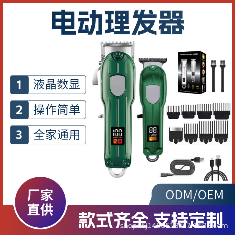 跨境新款理发器子母机电推剪高清数显专业电推子精钢刀头发廊理发