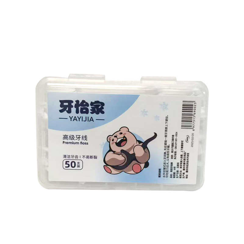 厂家批发齿点牙线一次性清洁牙线棒50支盒装代发广告品logo剔牙签