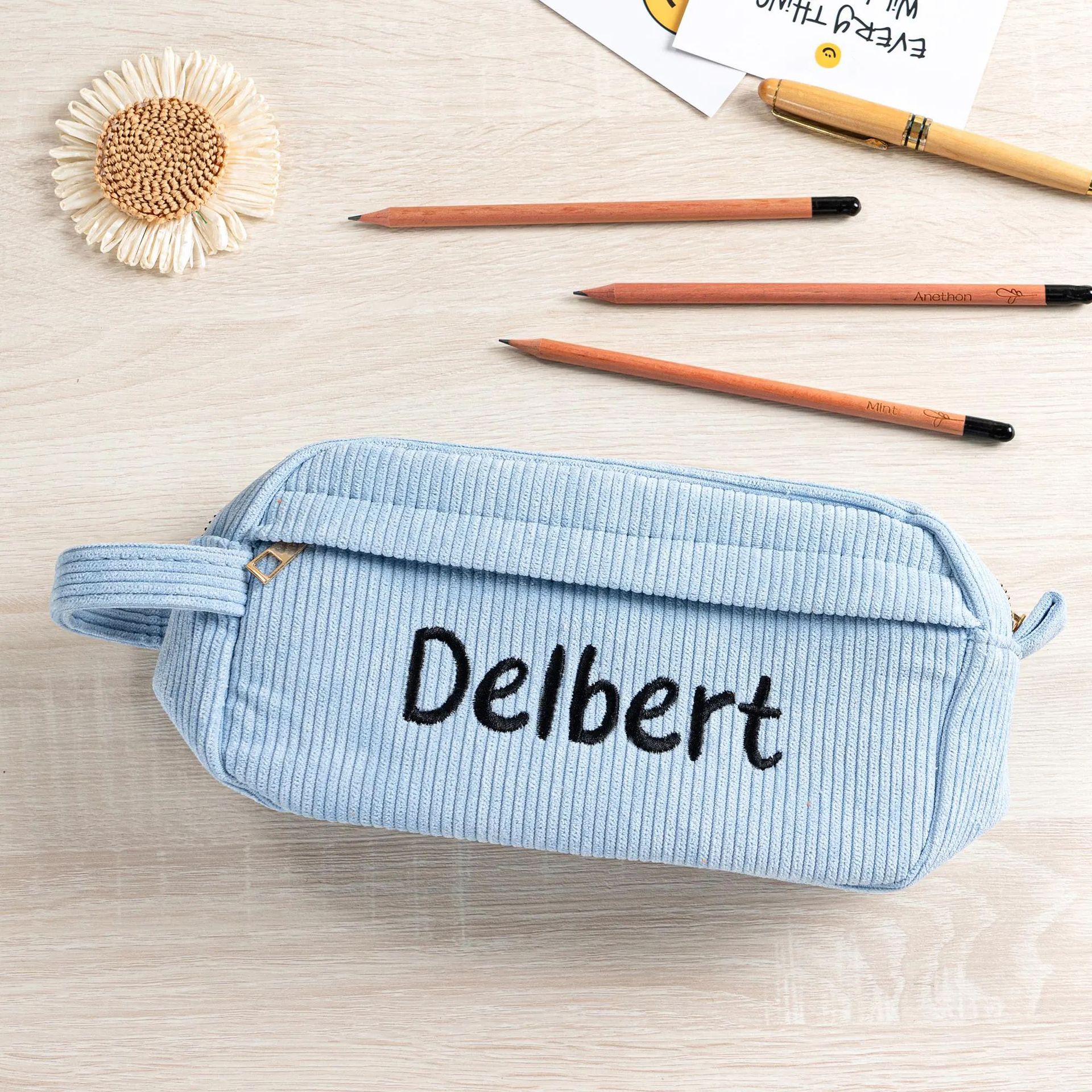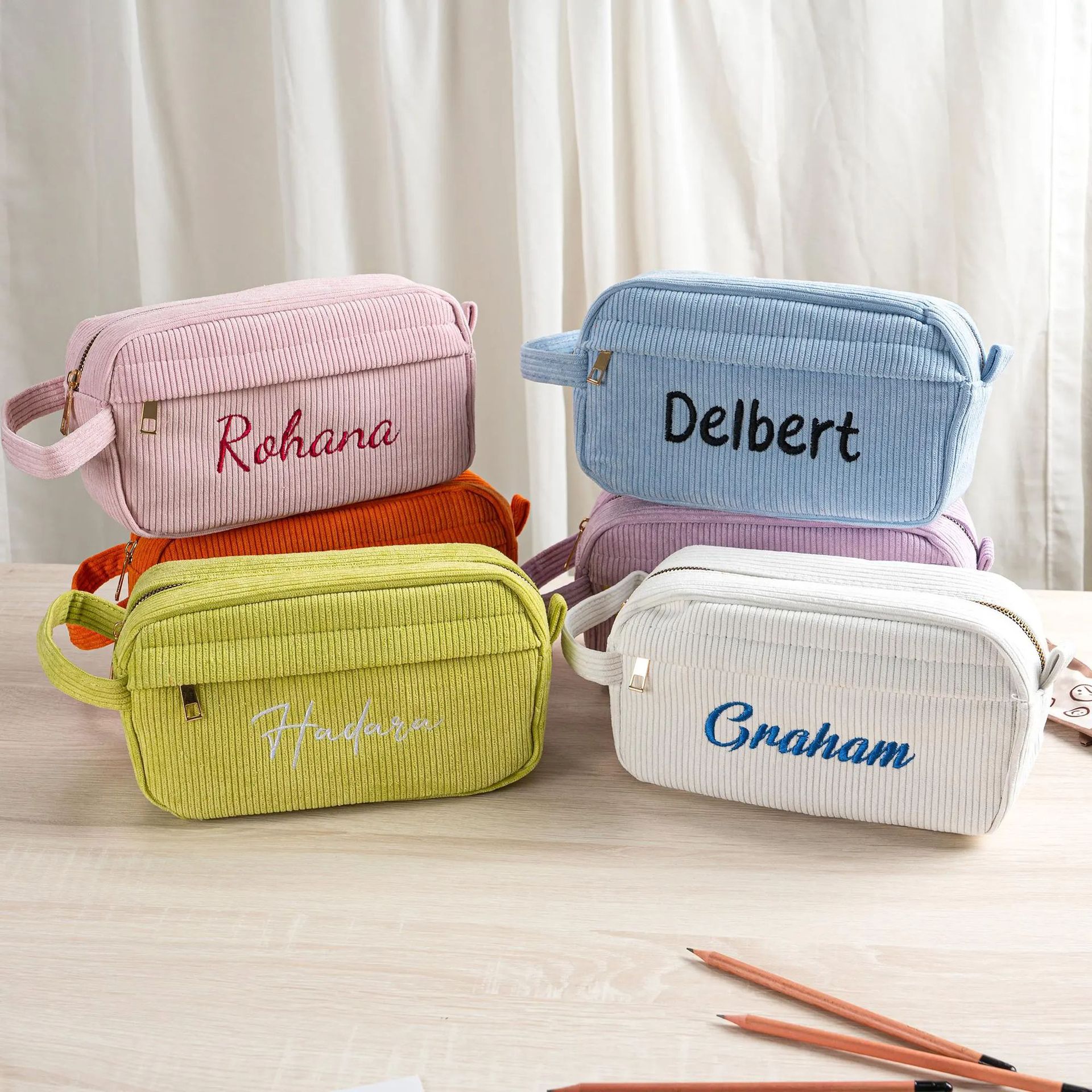 外贸热款日系灯芯绒大容量学生手提笔袋布艺刺绣旅行洗漱包化妆包
