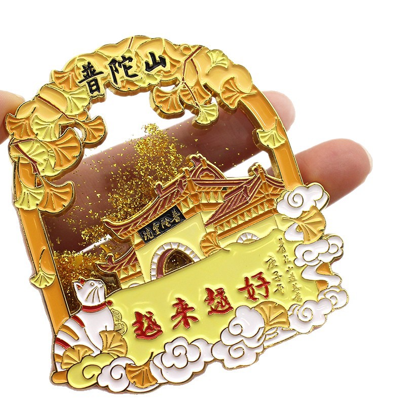 普陀山金属冰箱贴定制金粉流沙珐琅磁贴城市旅游文创寺庙祈福礼品