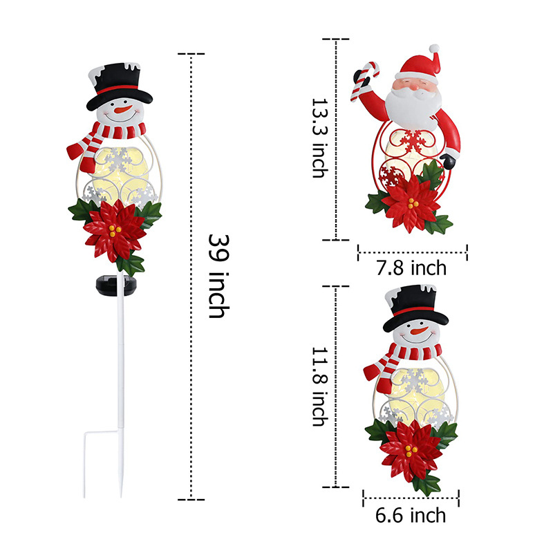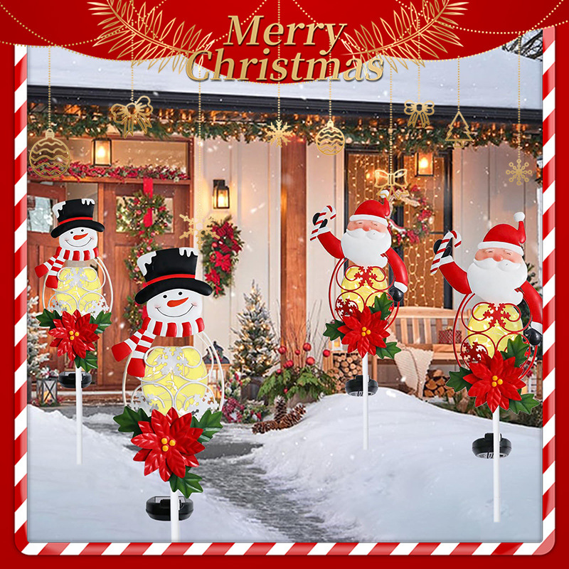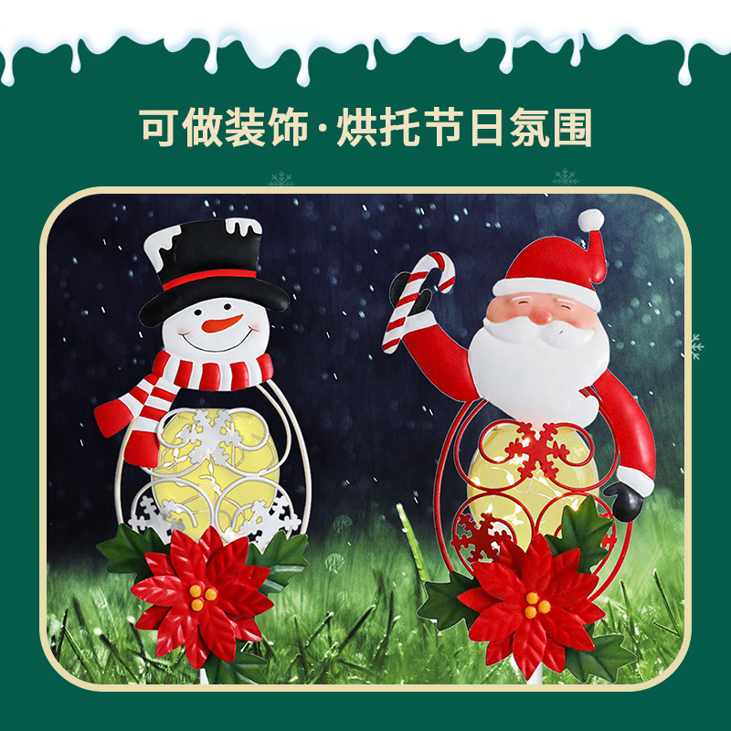 跨境户外太阳能圣诞装饰2件套金属圣诞老人雪人庭院圣诞灯装饰