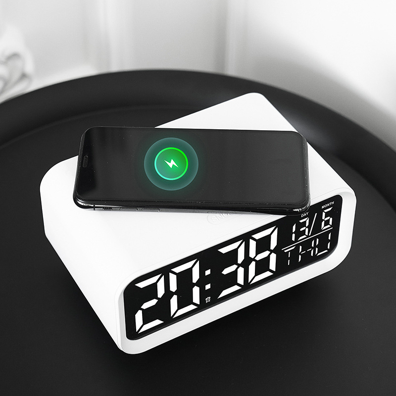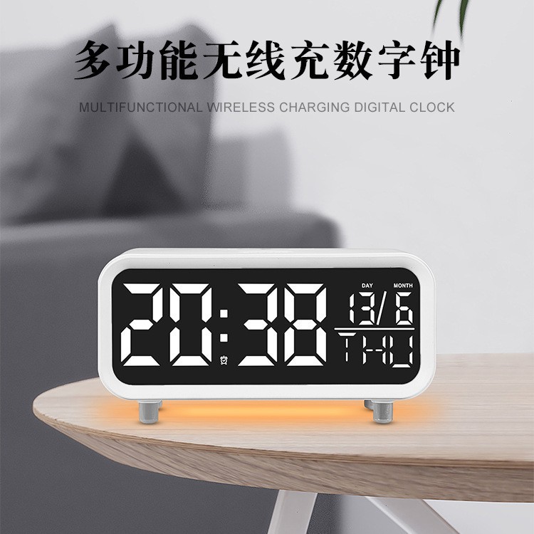热销LED无线充电台钟多功能夜灯时钟简约酒店闹钟2025充LED夜灯