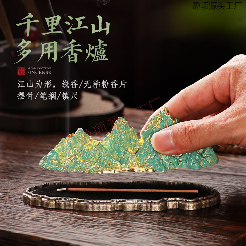 千里江山线香盒中式卧香炉线香座家用室内熏香炉仿古精美摆件