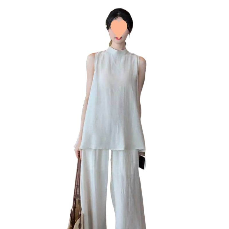 松弛感简约老钱风时尚套装女夏爆款宽松纯色无袖上衣阔腿裤两件套