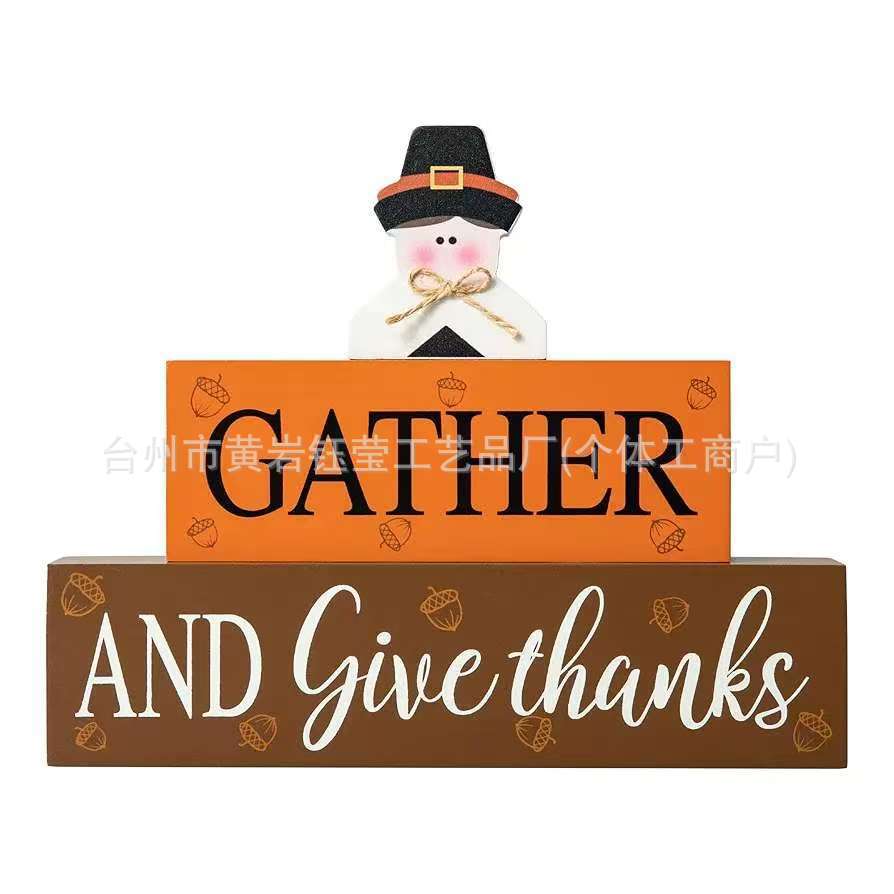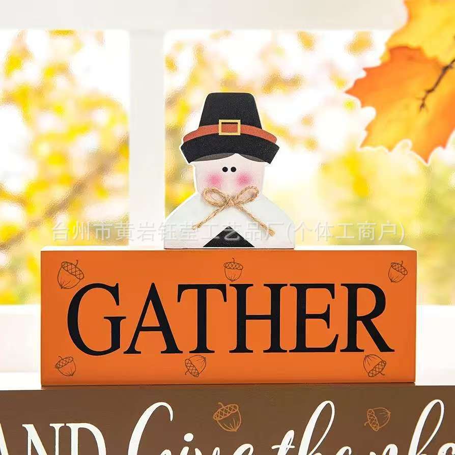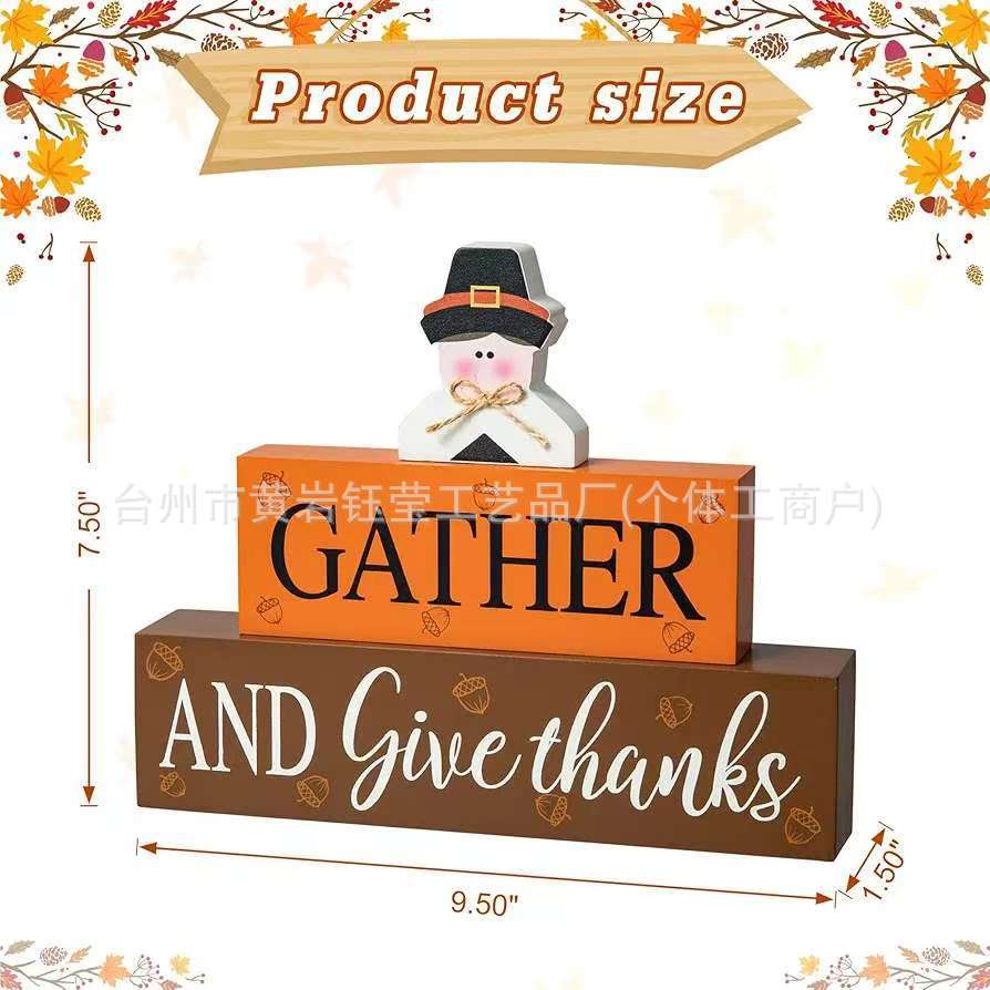 跨境新品实木木块摆件 餐桌聚会秋季木块感恩节节日木制工艺品