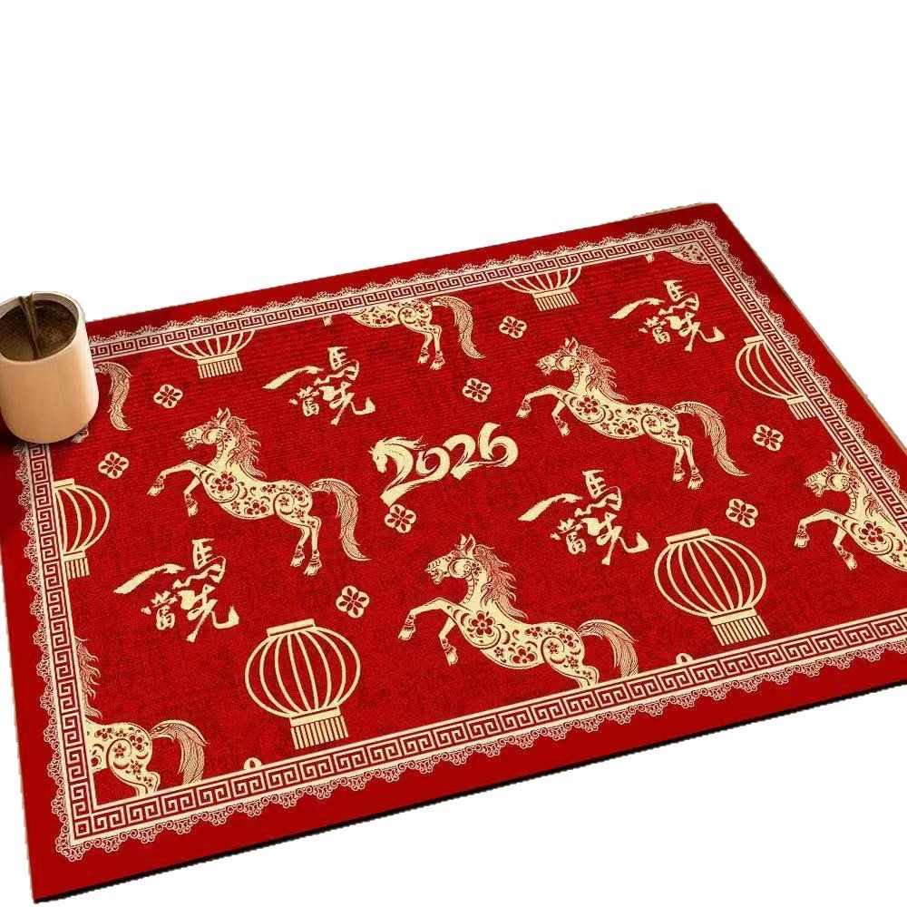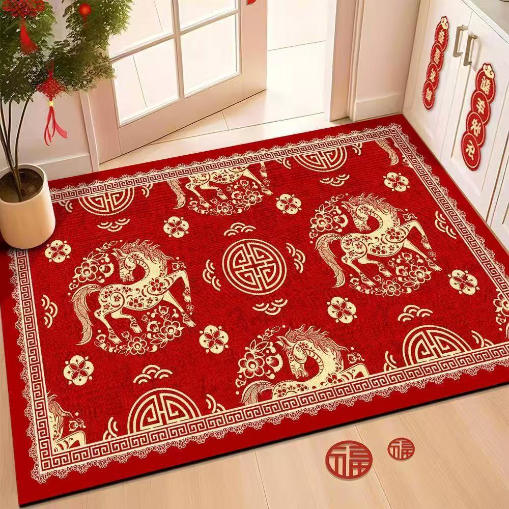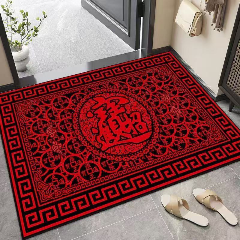 2026红色百福门垫水晶绒地毯新年中式家用吸水脚垫玄关易打理地垫