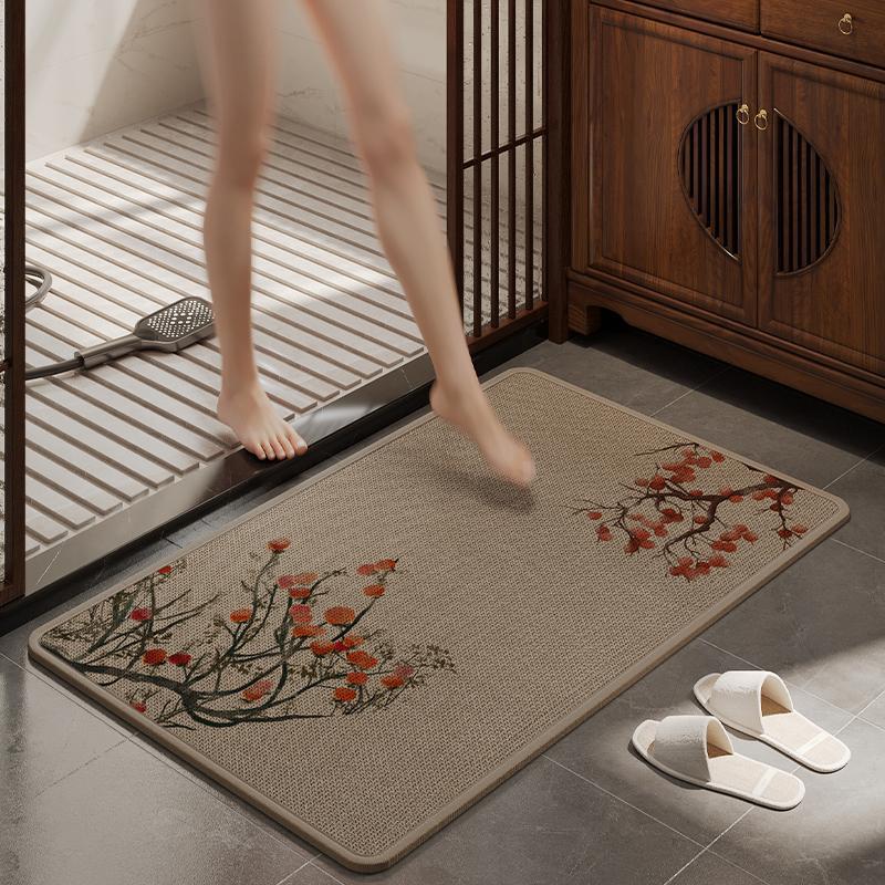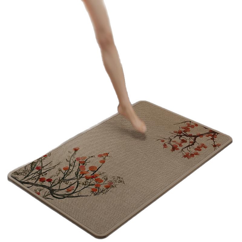 新中式亚麻地垫家用浴室门口吸水脚垫厂家批发易打理亚麻门口地垫