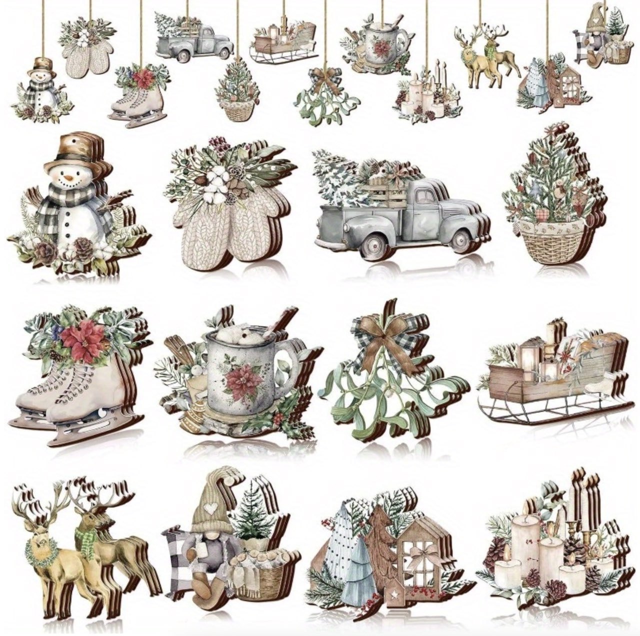 圣诞松锥麋鹿卡车雪人屋挂牌 圣诞节木质装饰带绳适用于圣诞派对