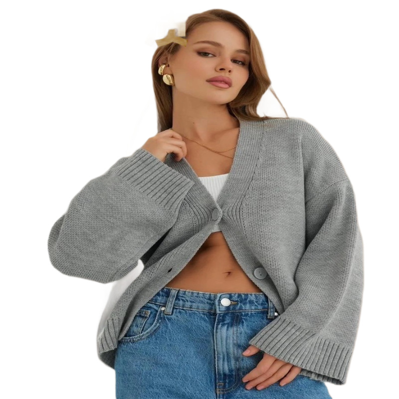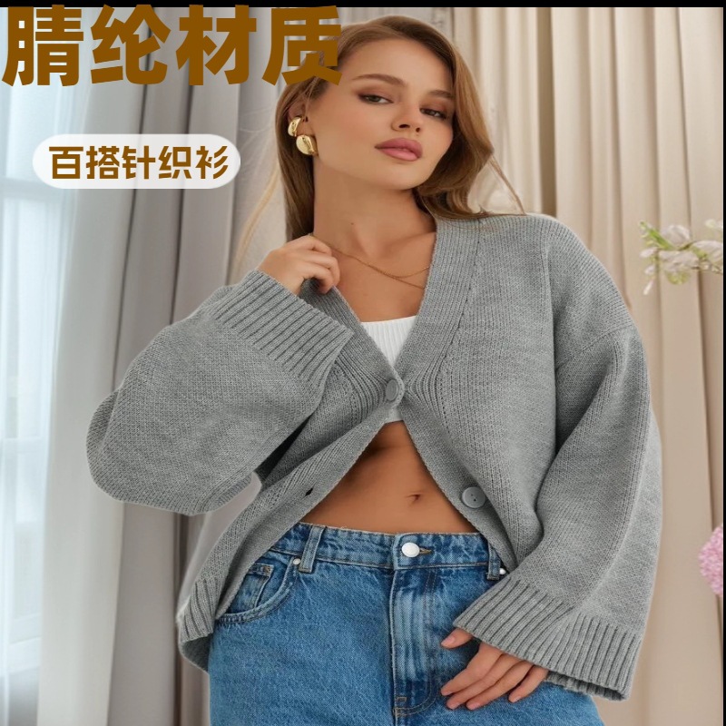 亚马逊毛衣女新款粉色加厚针织开衫宽松外套欧美风跨境女装外贸