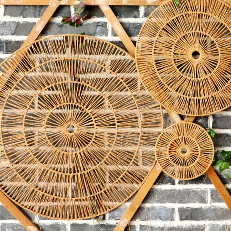 大型藤编圆形壁饰 沙发背景墙艺术装置 客厅装饰挂件天然藤条编织