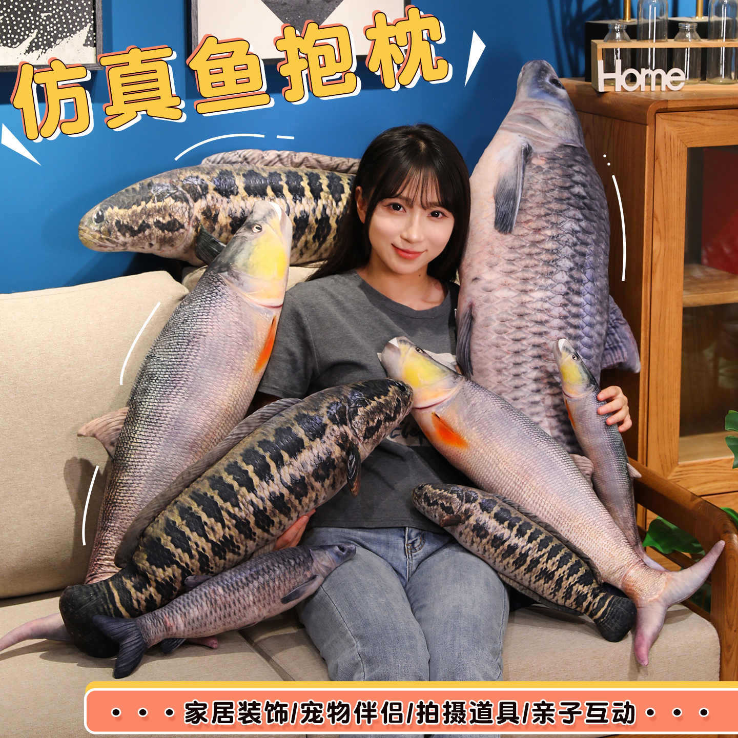 仿真鱼抱枕可爱墨鱼螺丝青鱼鱤鱼毛绒玩具抱枕儿童陪伴鱼抱枕批发