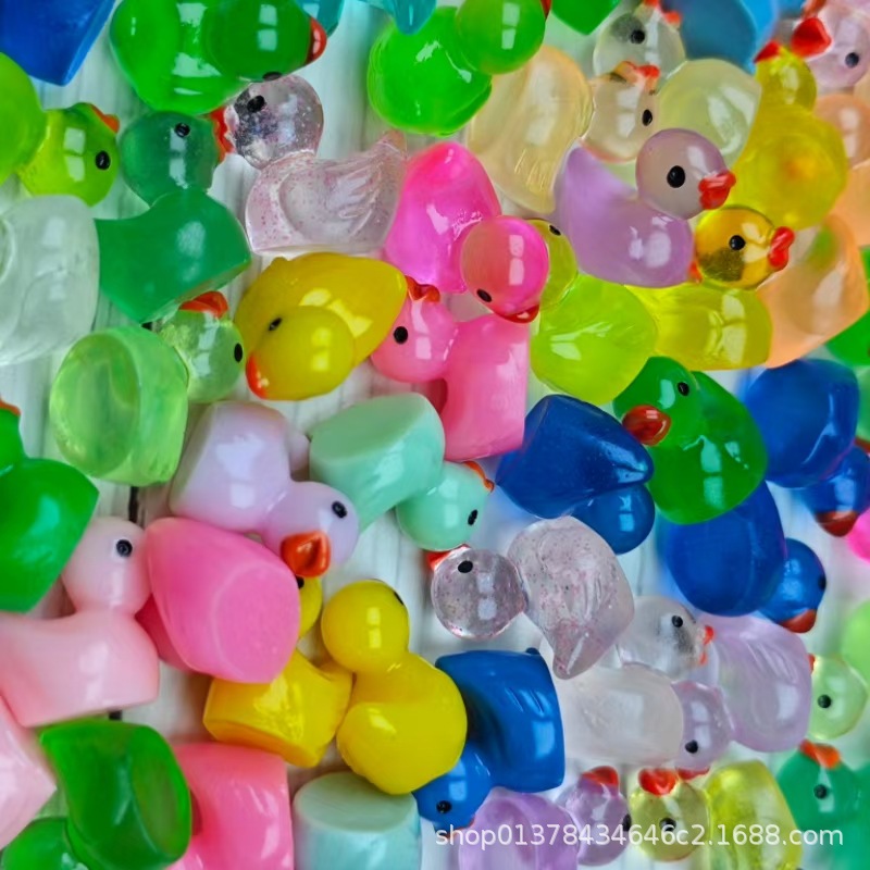 跨境立体可爱实色夜光鸭子小动物diy树脂饰品配件车载桌面小摆件