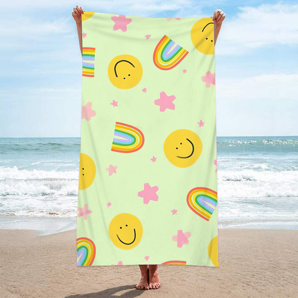 外贸新款印花超细纤维涤纶海滩擦汗游泳披肩沙滩巾笑脸爱心系列