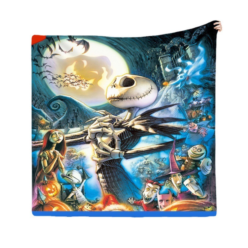 跨境亚马逊圣诞节万圣节骷髅杰克法兰绒毛毯数码印花批发厂家直供