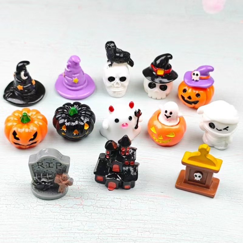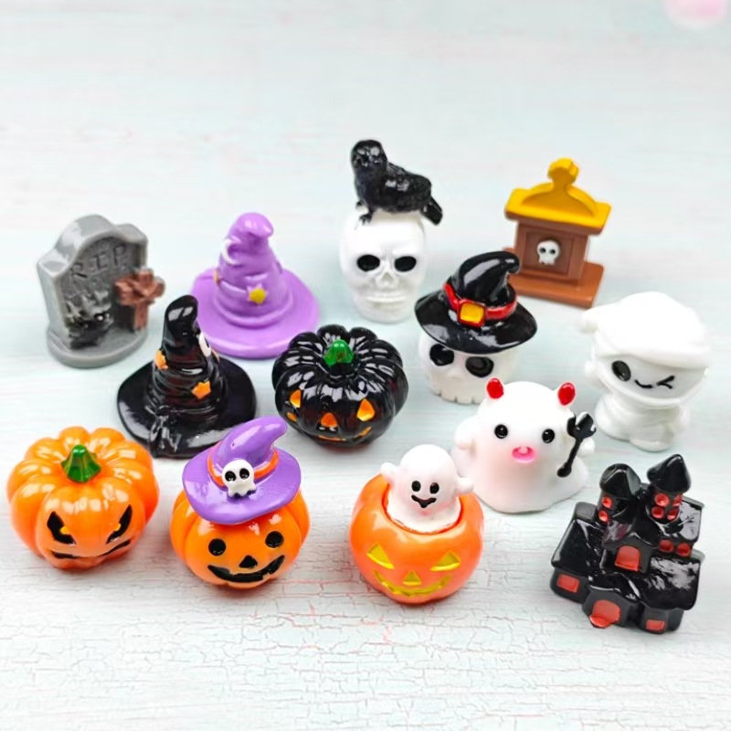 跨境热销立体万圣节幽灵骷髅恶魔南瓜 diy树脂饰品装饰小摆件批发