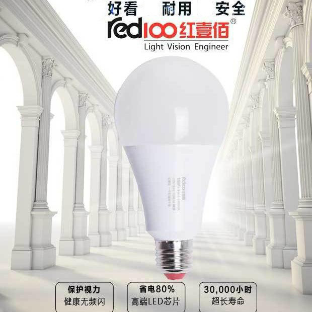 红壹佰球泡厂家现货超亮护眼无频闪柱形节能灯泡厂房灯泡LED球泡