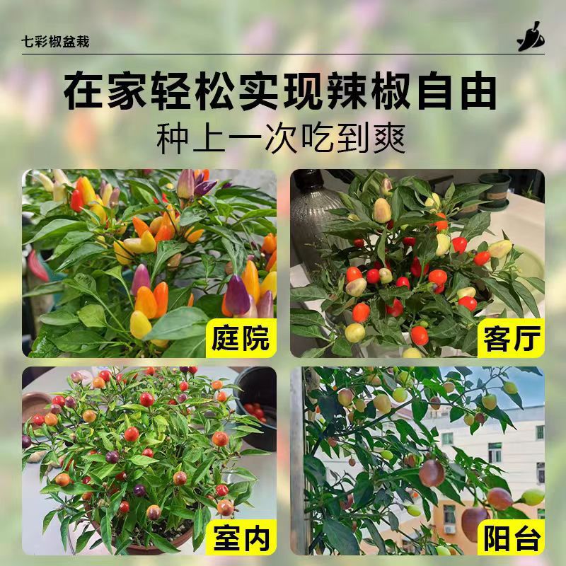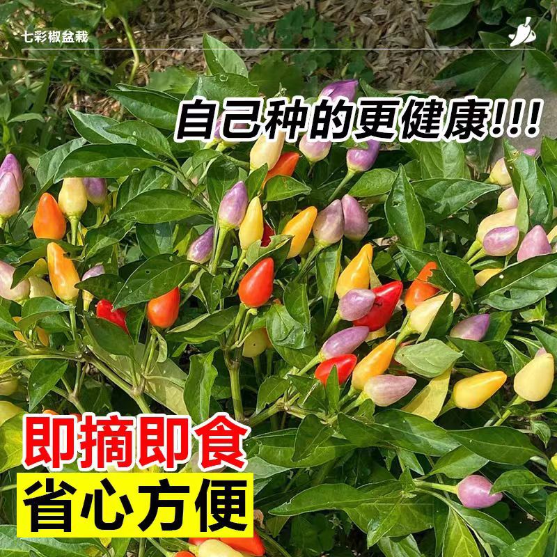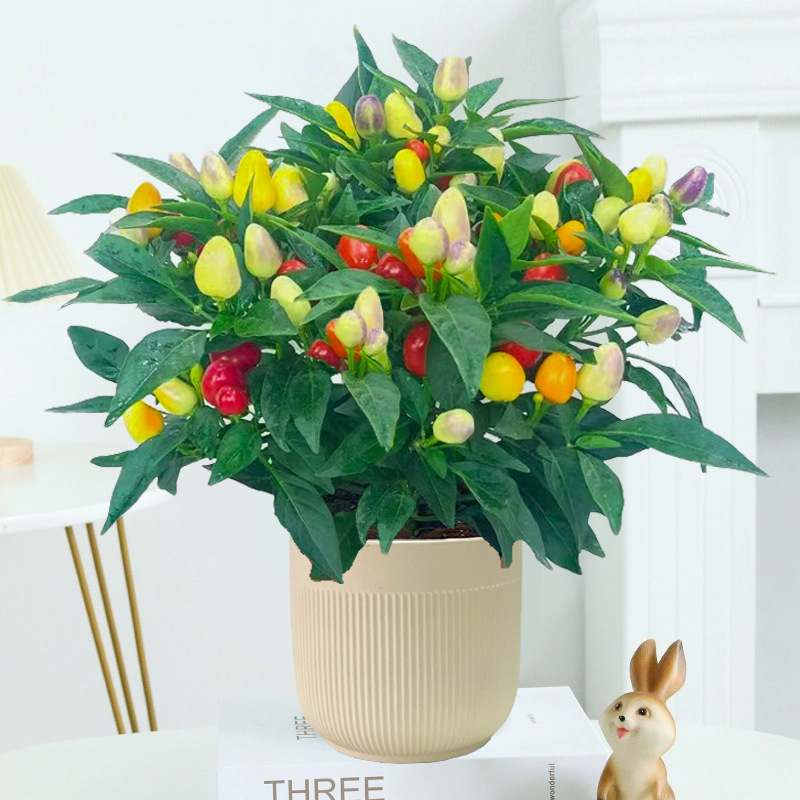 五彩椒盆栽带果可食用新鲜朝天椒七彩辣椒苗阳台庭院四季开花结果