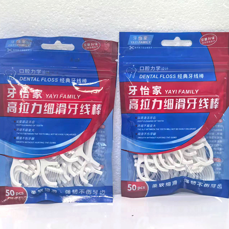 口腔清洁一次性细滑牙线50只装现货批发塑料牙线弓形便携式牙线棒