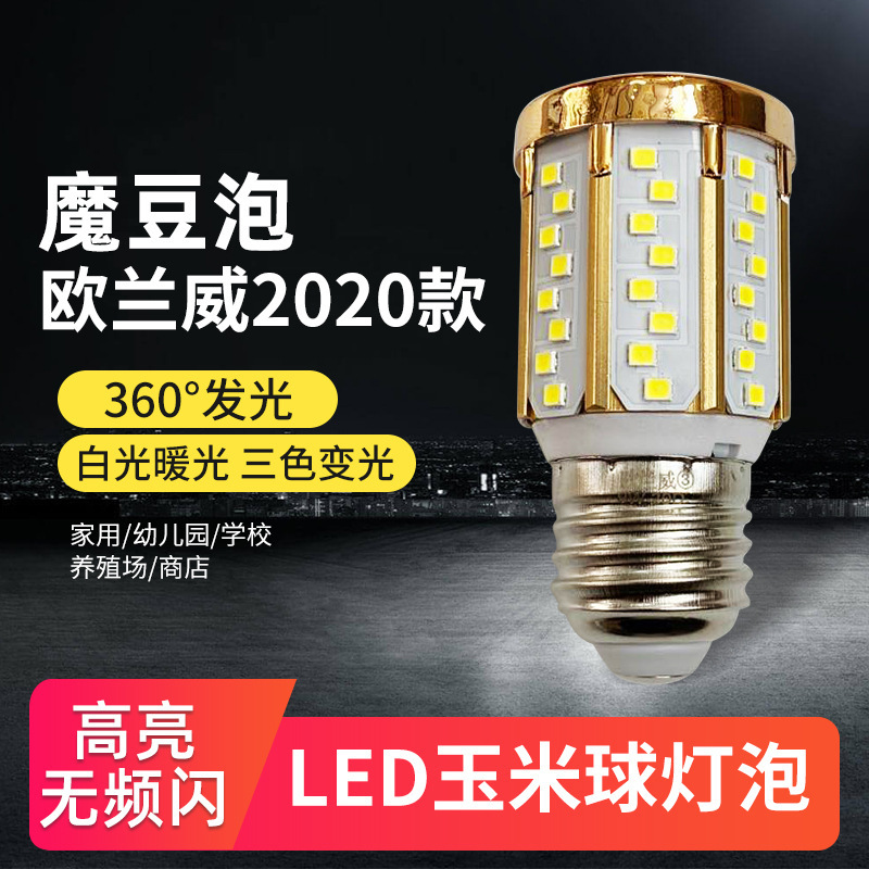 欧兰威2020款魔豆灯泡独立LED球泡灯三色变光螺口金线铜支架灯泡