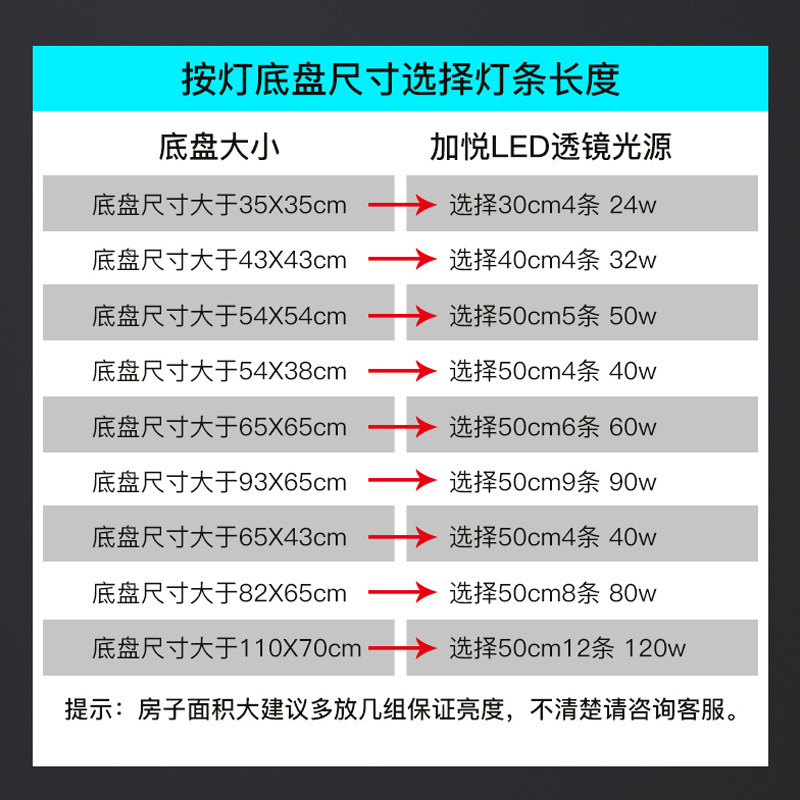 功率 | 一拖四50CM变光 | 功率 | 一拖四60CM变光 |
